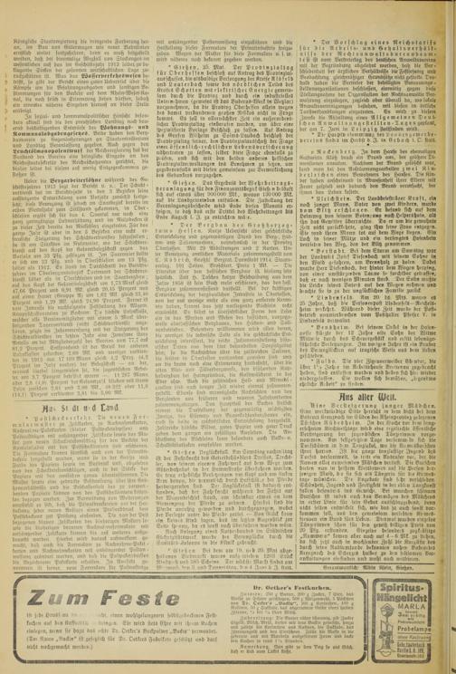 "Gießen, 25. Mat. Der Provinzialtag für Oberhessen beschloß auf Antrag des Provinzial- aurschusses, die alsbaldige Versorgung der Kreise Alsfeld und Lauterbach sowie des nördlichen Teiles des Kretscs Schotten mit elektrischer Energie gemeinsam durch die Provinz und durch ein industrielles Unternehmen (gemeint ist das Buderus-Werk in Wetzlar) vorzunehmen, da die Provinz Obeihessen allein wegen des damit verbundenen großen Risikos nicht in Frage kommt. Es soll in allernächster Zeit ein außerordentlicher Provtnzialtag etnberufen werden, um über eine spezialisierte Vorlage Beschluß zu fassen. Auf Antrag dttz Grafen Wilhelm zu Solms-Laubach beschloß der Provivzialtag ferner, den Provinzialausschuß der Frage einer öffentlich-rechtlichen Lebensversicherung nähertreten zu lassen, selber diele Frage ebenfalls zu prüfen, und sich mit den beiden anderen hessischen Prownzialvei Wallungen ins Benehmen zu setzen, um gegebenenfalls mit diesen gemeinsam zur Verwirklichung des Gedankens vorzugehen.