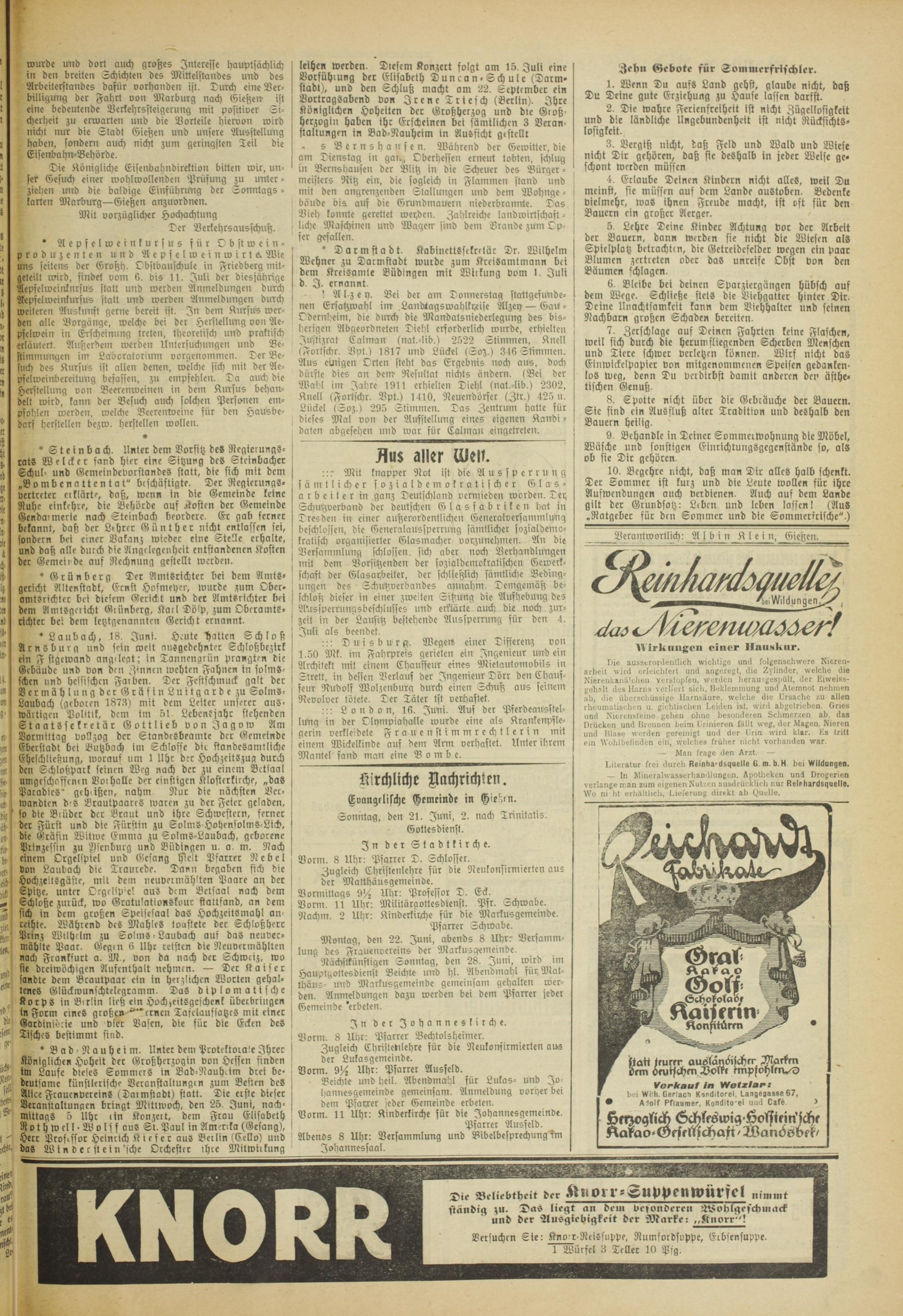 Montag, den 22. Juni, abends 8 Uhrr Versammlung des Frauenvereins der Markuzgemeinde.