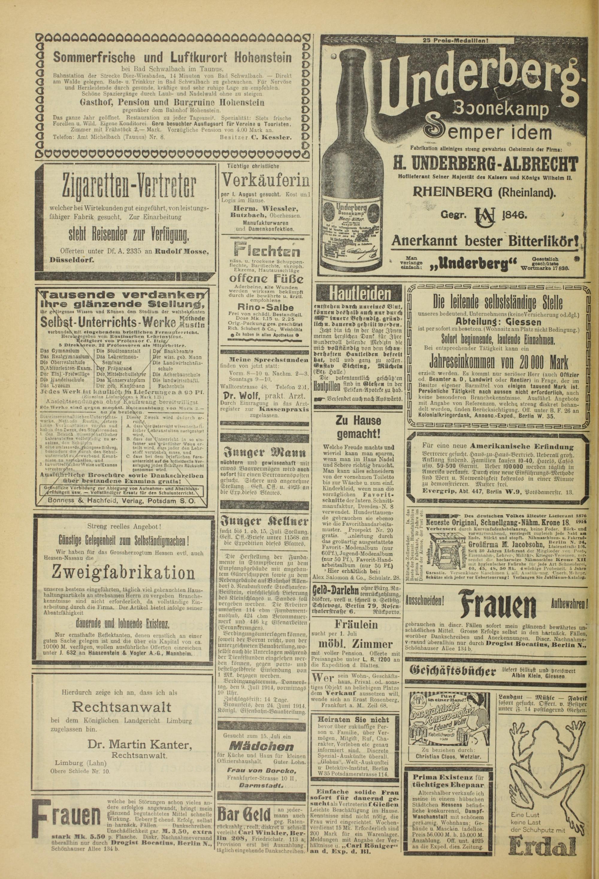 Verdlnguiigsleruiin, Donnerstag, den 9. Juli 1914, vormittags 10 Uhr.