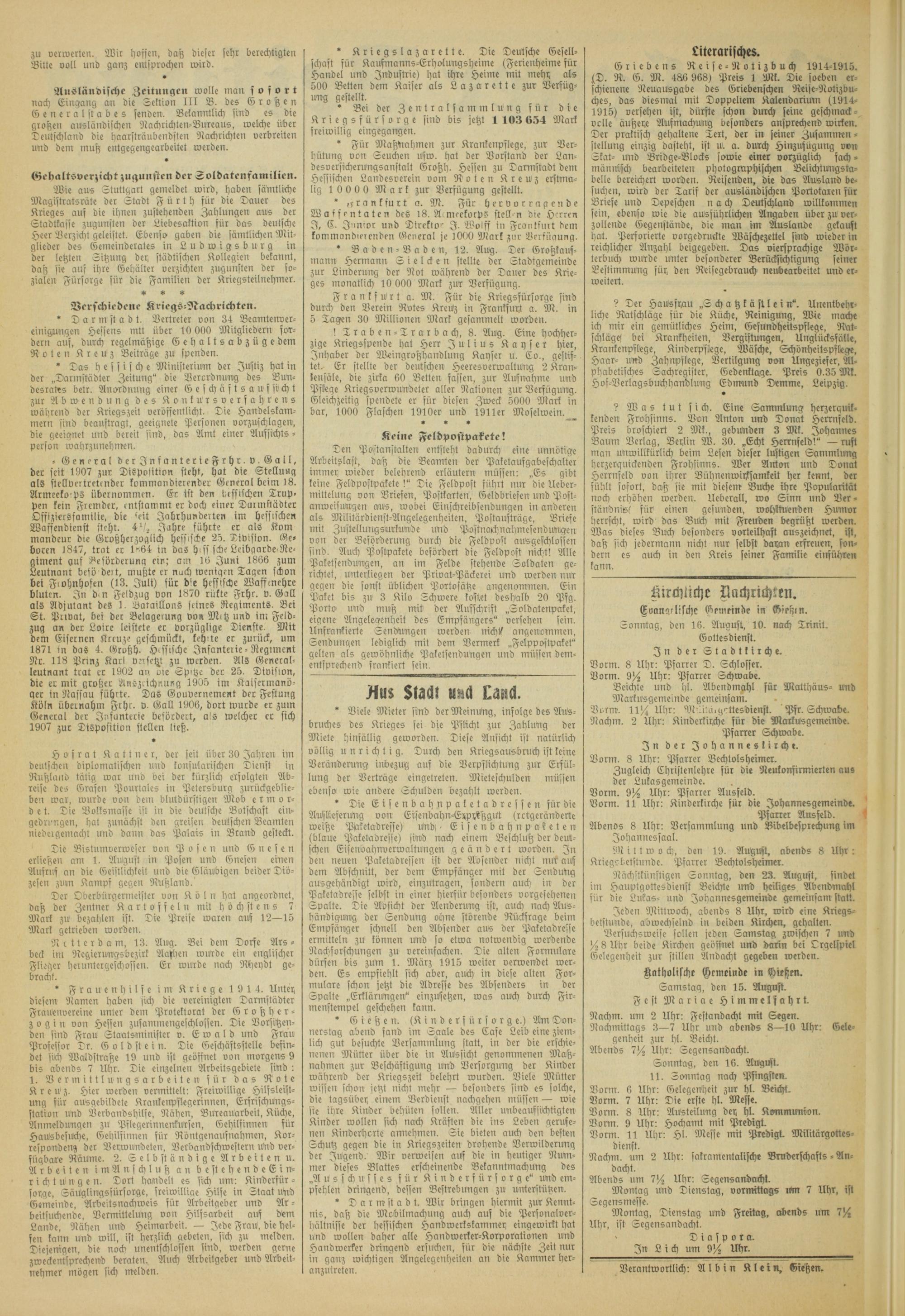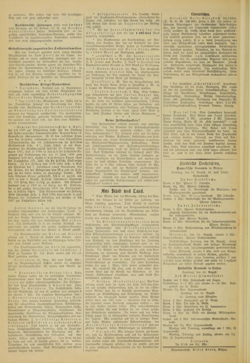 Ai i l t w o ch, den 19. August, abends 8 Uhr : Kiiegsbetstunde. Pfarrer Bechtolsheimer.