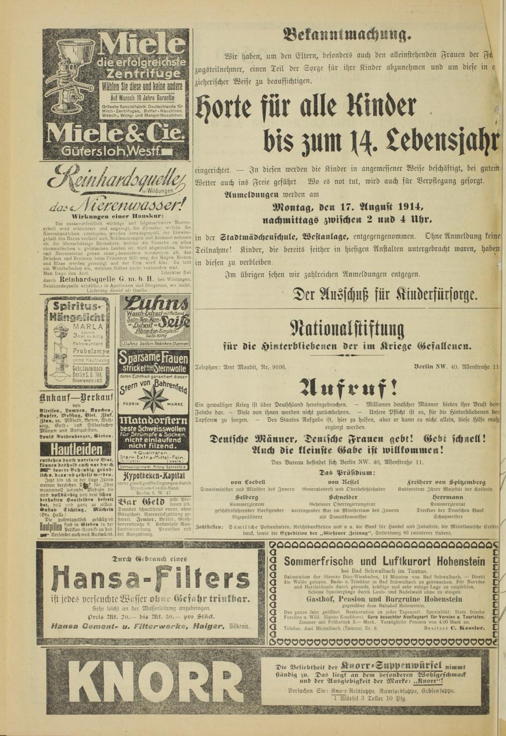 Montag, ven 17. August 1914, nachmittags zwischen 2 und 4 Uhr,