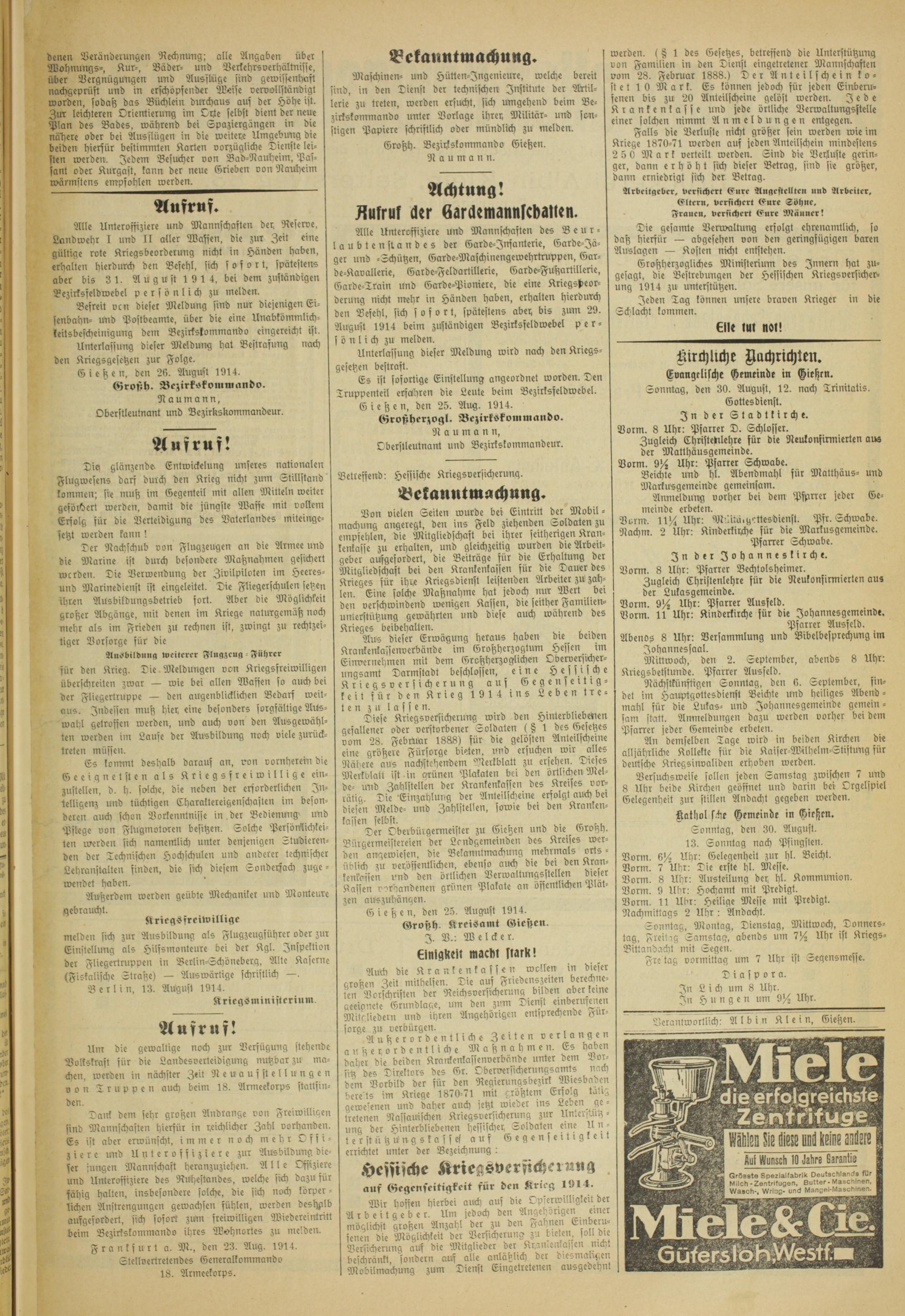 G i e tz e n, den 25. August 1914.