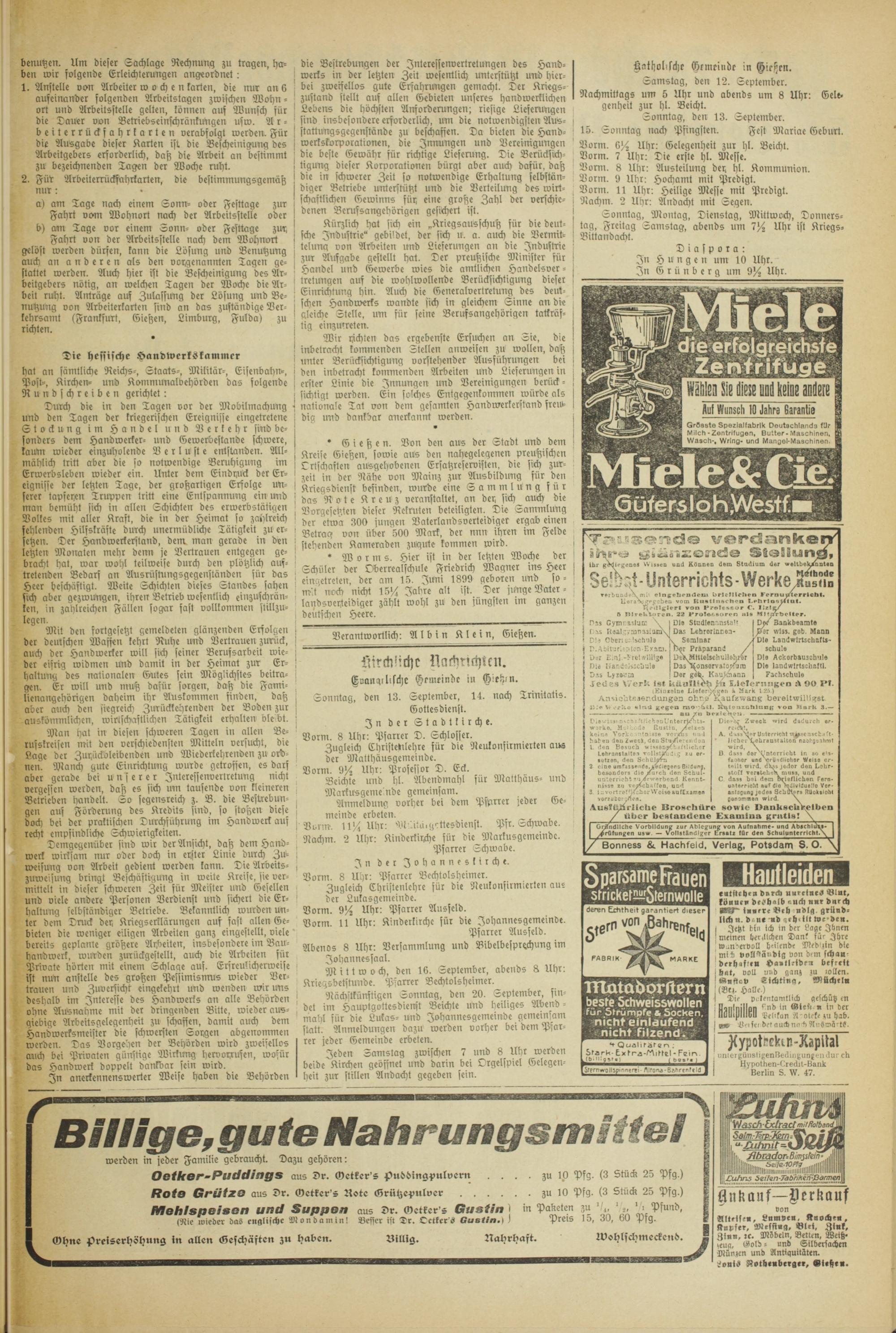 Mittwoch, den 16. September, abends 8 Uhr: Kriegsbetstunde. Pfarrer Bcchtolsheimer.