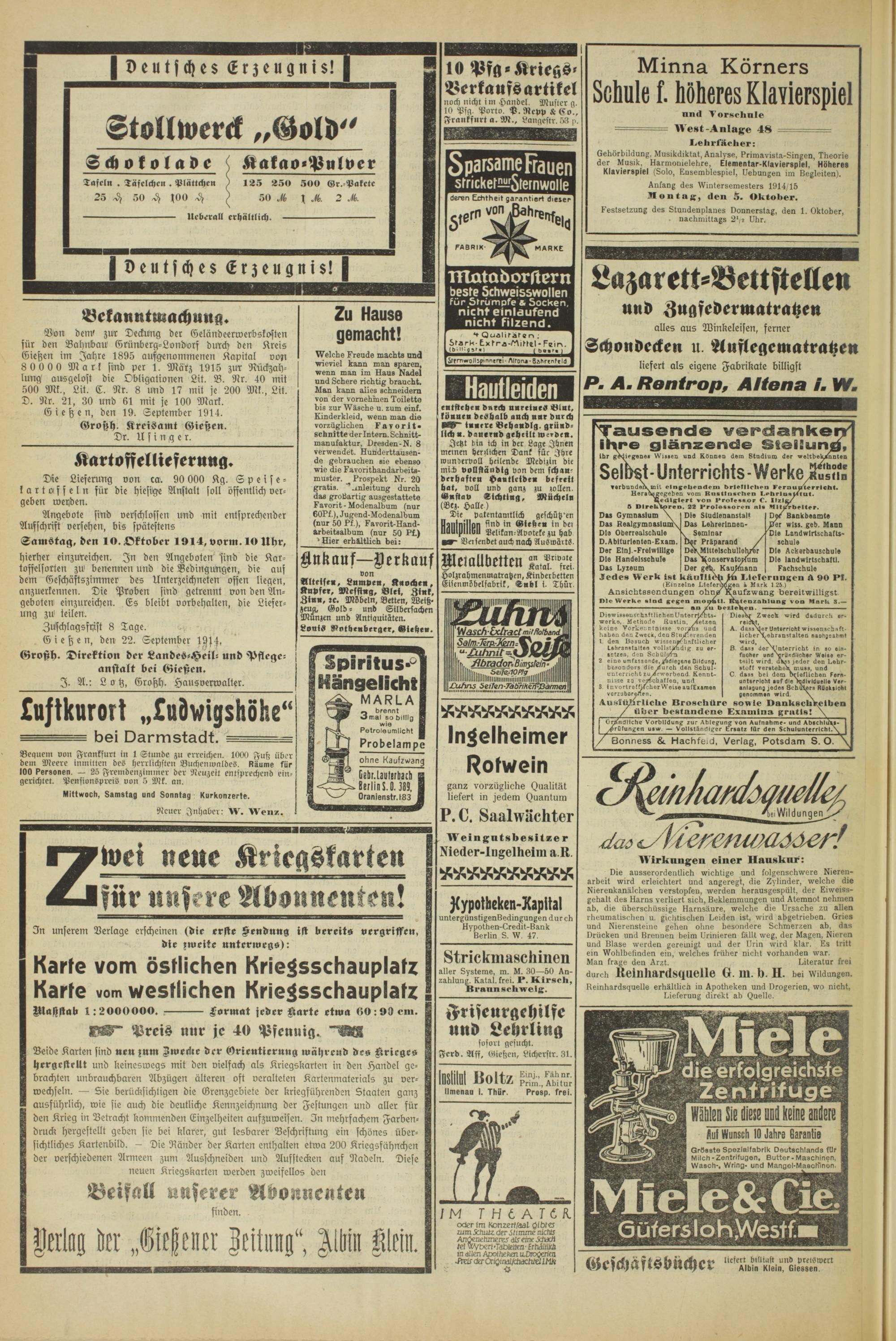 Gießen, den 22. September 15)14, tHroftb. Direktion der LandeS-Heil- und Pflcge- anstalt bei (Hießen.