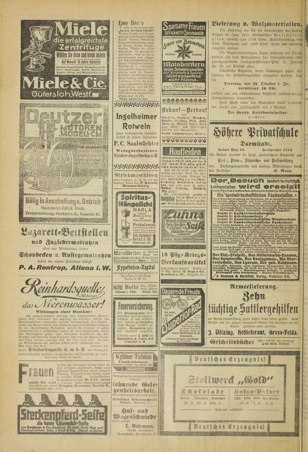 Die Lieferung der für die Kreisslratzen des Kreises Eieszen im Jahr 1915 erforderlichen Walzmaterialien, nämlich von 5700 Cbm. Basalikleinschlag, 900 Cbm. Basaltgrus und 1150 Cbm. Sand soll öffentlich vergeben werden.