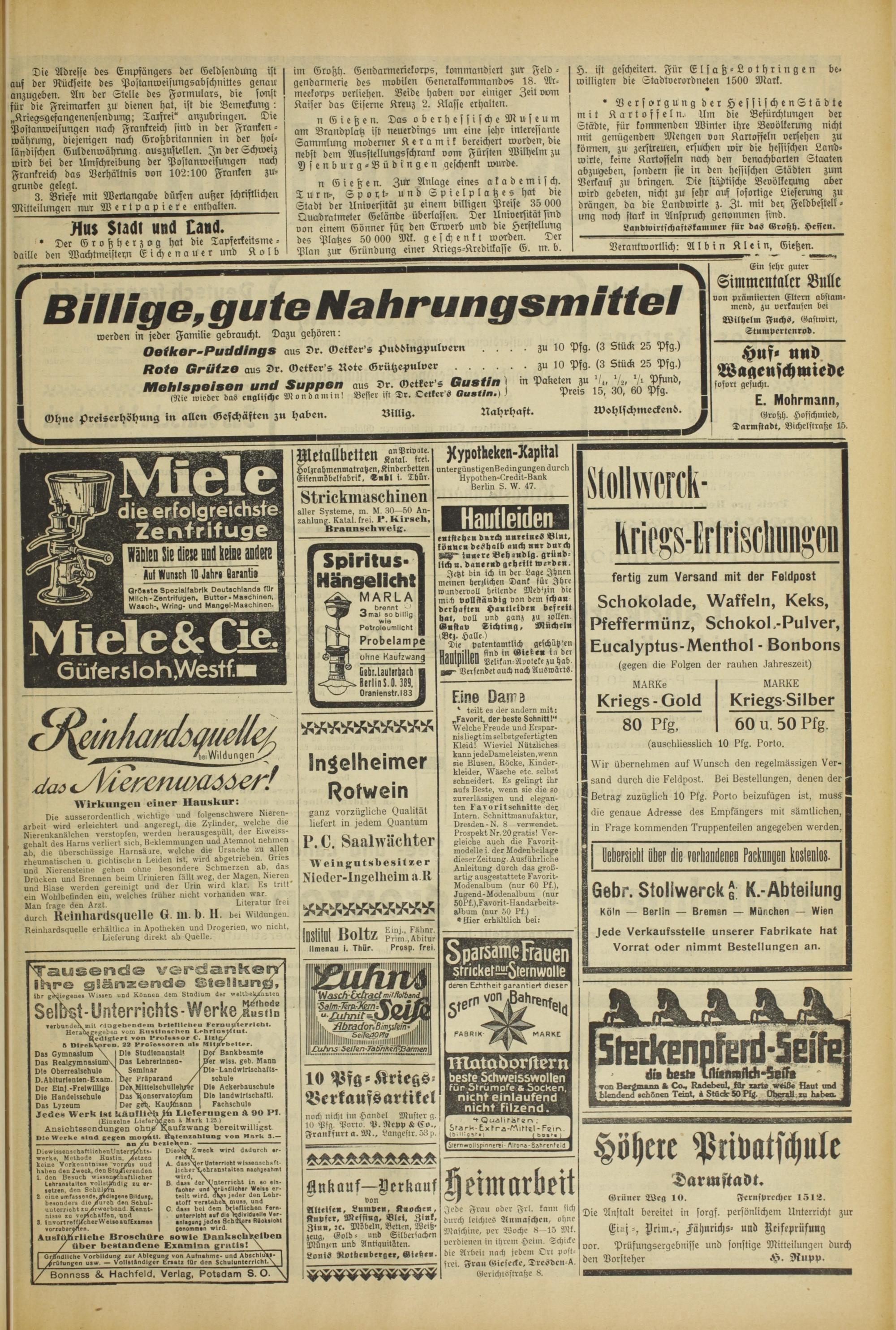 Wir übernehmen auf Wunsch den regelmässigen Versand durch die Feldpost. Bei Bestellungen, denen der Betrag zuzüglich 10 Pfg. Porto beizufügen ist, muss die genaue Adresse des Empfängers mit sämtlichen, in Frage kommenden Truppenteilen angegeben werden,
