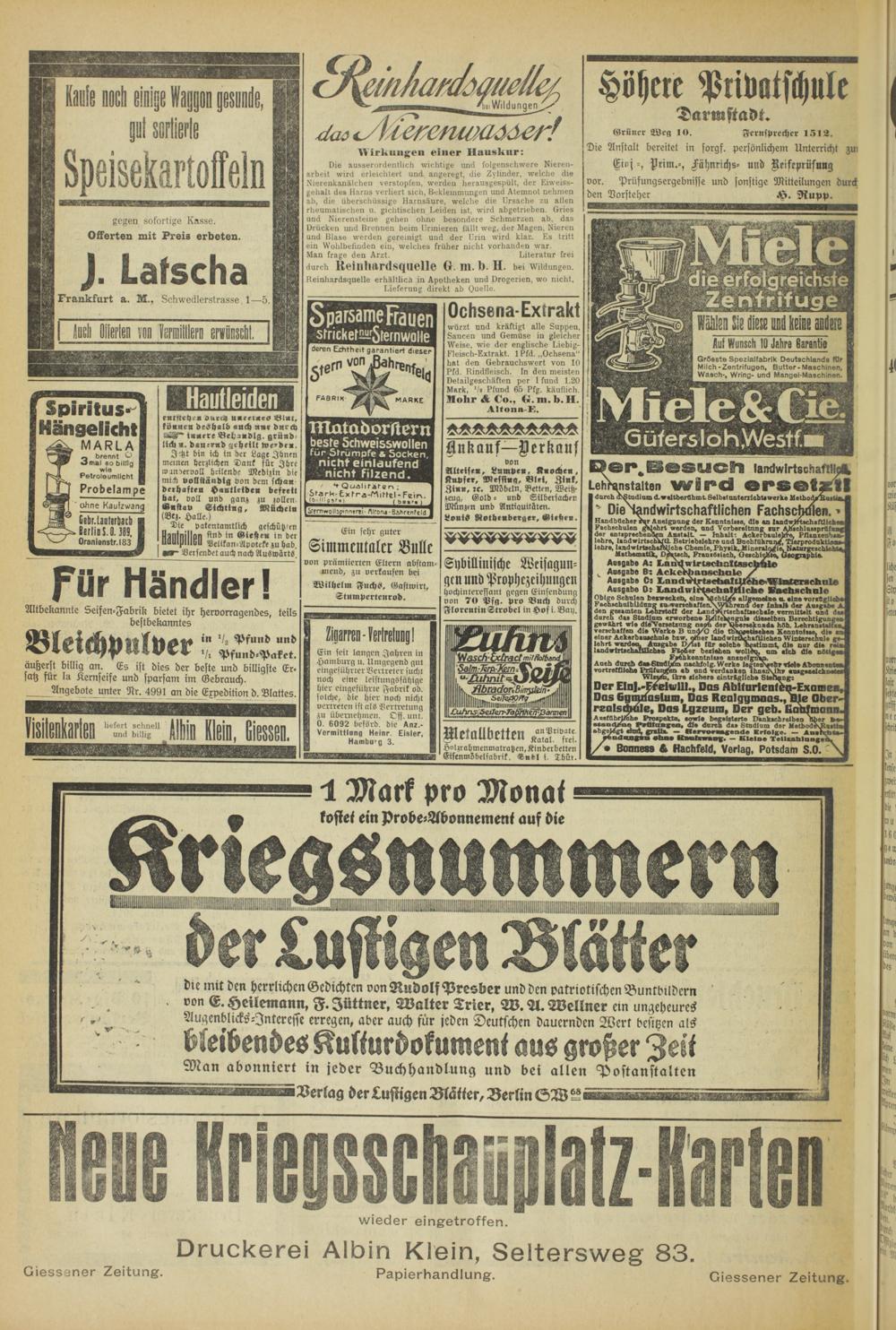 Giessener Zeitung. Papierhandlung. Giessener Zeitung.