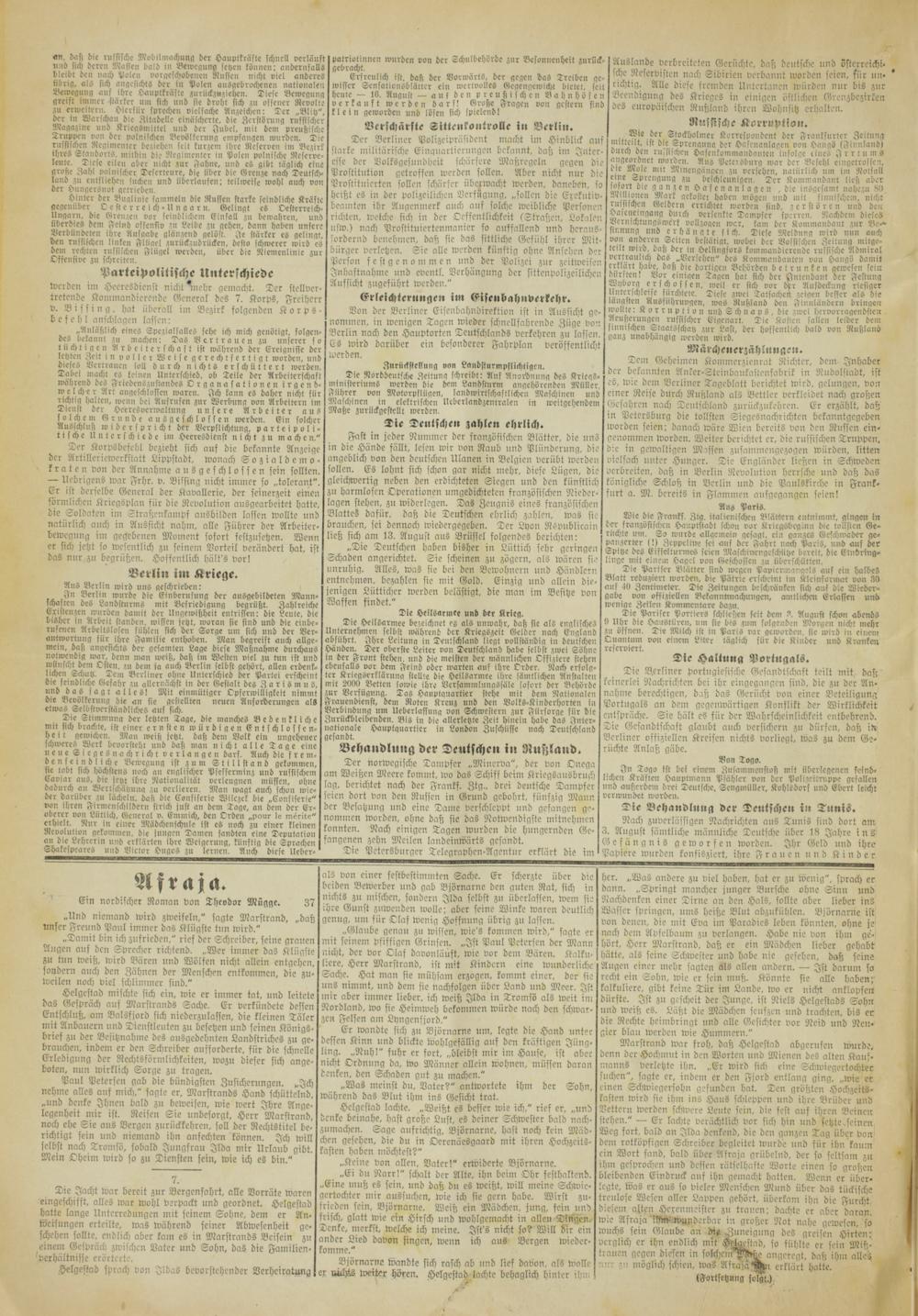 „Die Deutschen haben bisher in Lüttich sehr geringen Schaden angerichtct. Sie scheinen zu zögern, als wären sie unruhig. Alles, was sie bei den Bewohnern und Händlern entnehmen, bezahlen sie mit Gold. Einzig und allein die- jenigen Lütticher werden belästigt, die man im Besitze von Waffen findet."