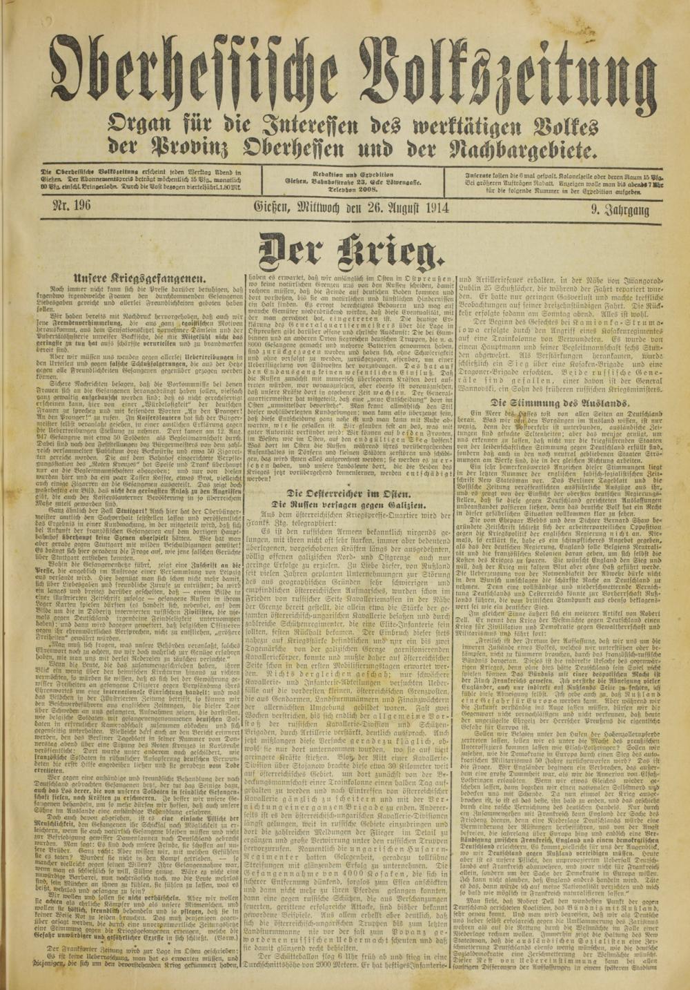 Ein Meer des- Hasses tost von allen Seiten an Deutschland heran. Was wir vön den Vorgängen in, Ausland ivissen, ist mir wenig, denn der Postvcrkehr ist unterbunden, ausländische Zeitungen sind gesuchte Seltenheiten: aber das wenige genügt, um »ns erkciiiien zu lassen, dass nicht nur dte kriegführenden Staaten von der leidenschaftlichen Stimmung gegen Deutschland erfüllt sind, sondern dass auch in den noch neutral gebliebenen Staaten Strömungen am Werke sind, die in der gleichen Richtung arbeiten.