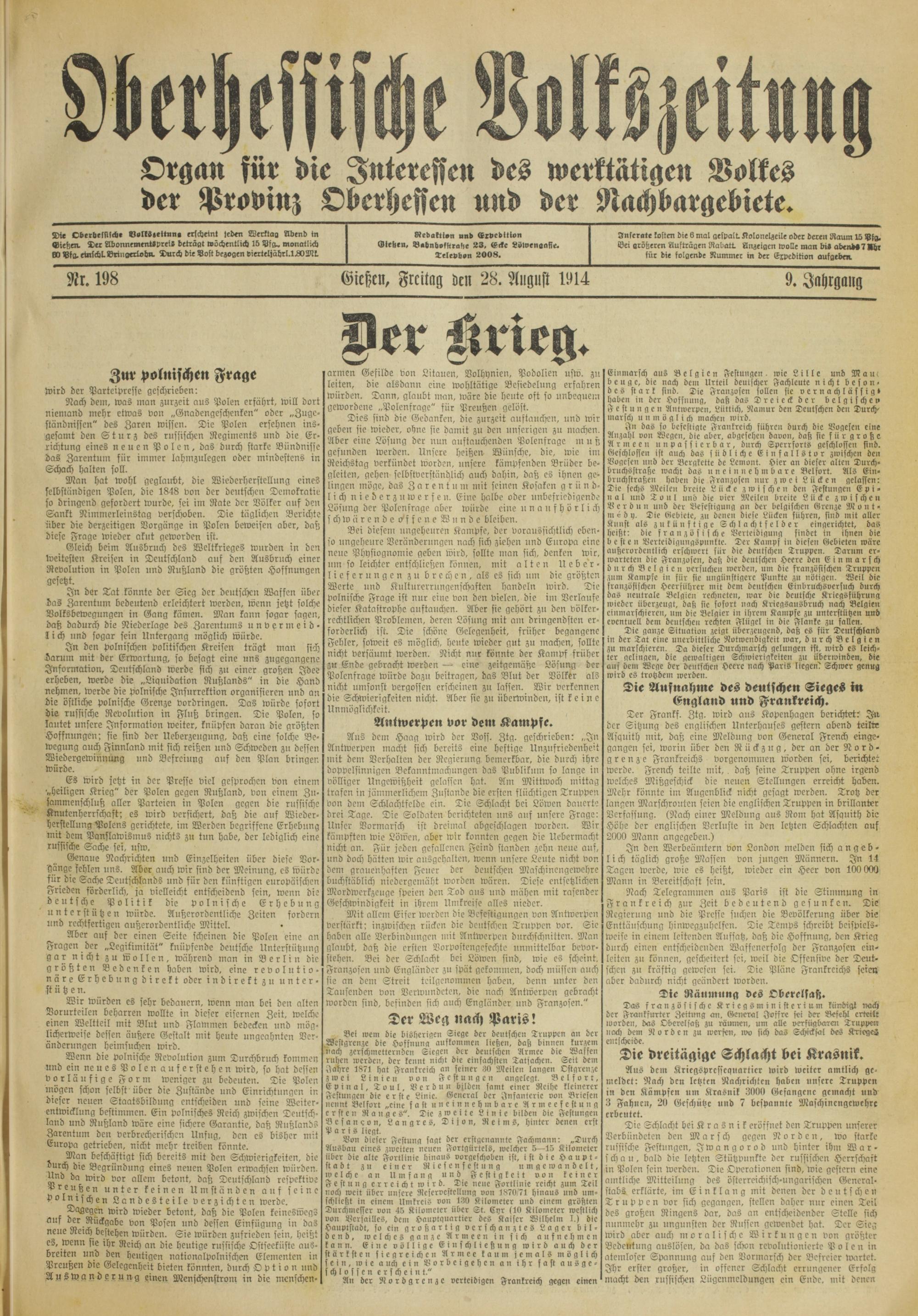 Organ für die Interessen des werktätigen Volkes der Provinz Oberheffen und der Nachbargebiete.