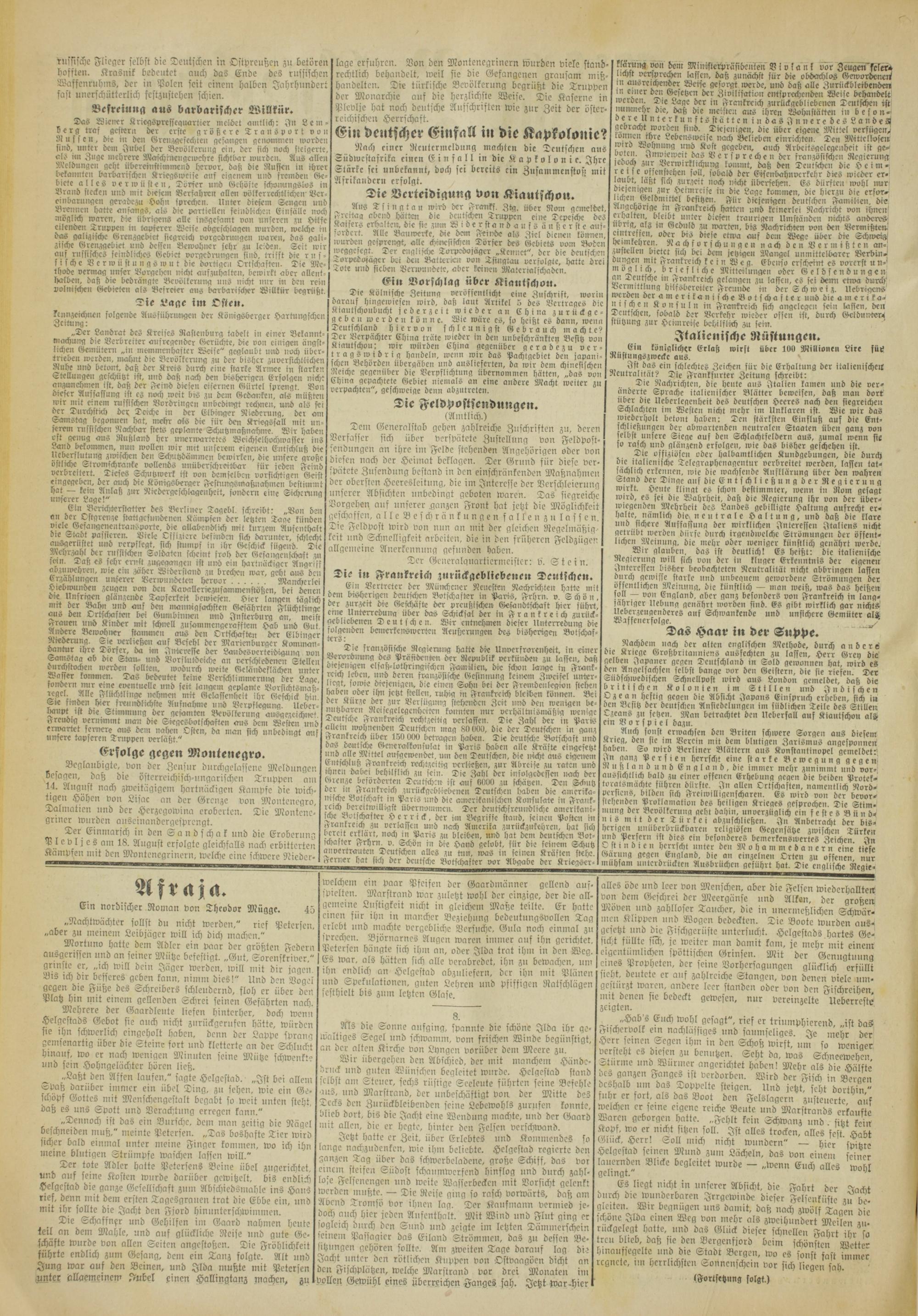 Ter Einmarsch in den S a n d s ch a k und die Eroberung P l e v l j e s am 18. August erfolgte gleichfalls nach erbitterten Kämpfen mit den Montenegrinern, welche eine schwere Nieder-