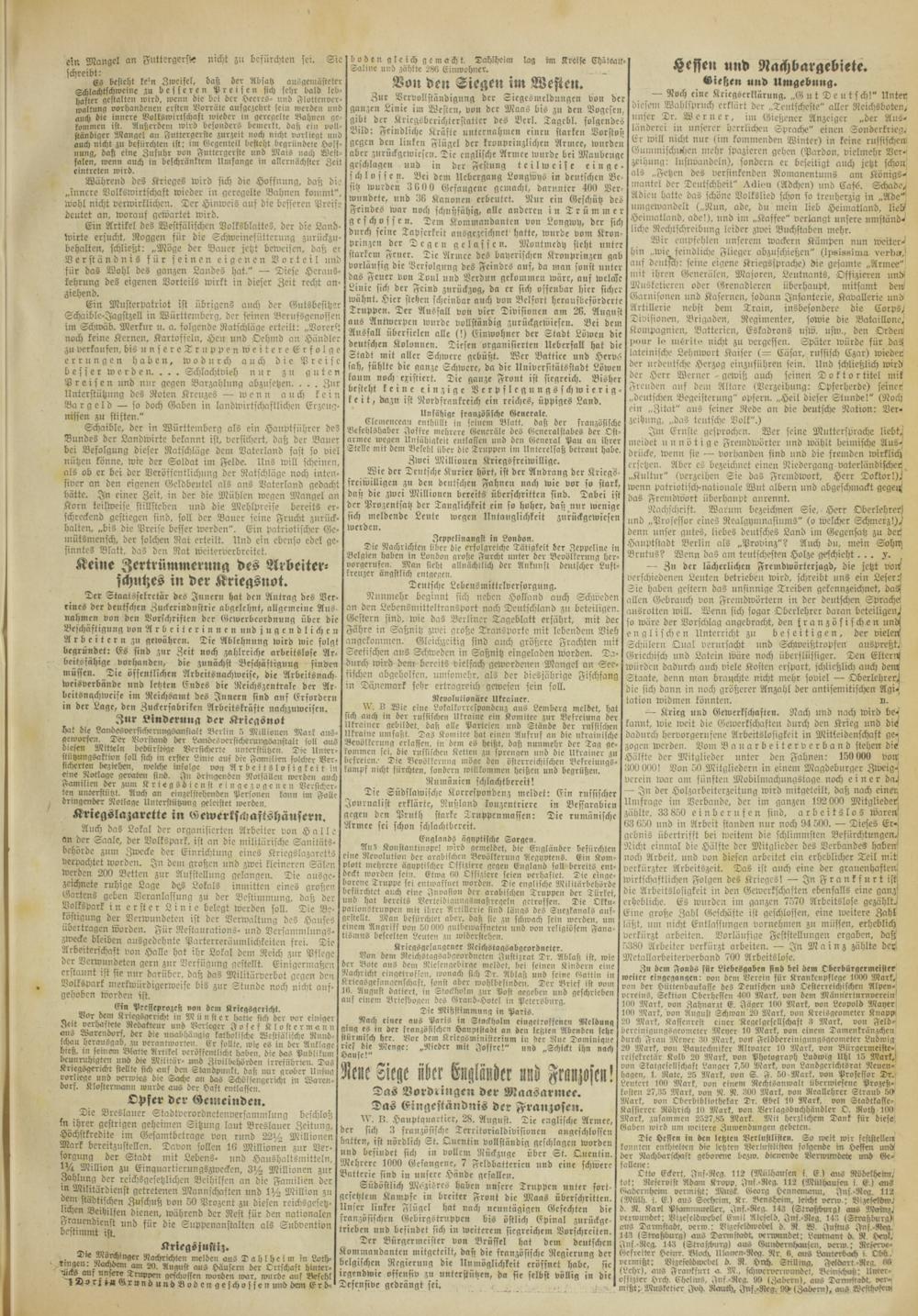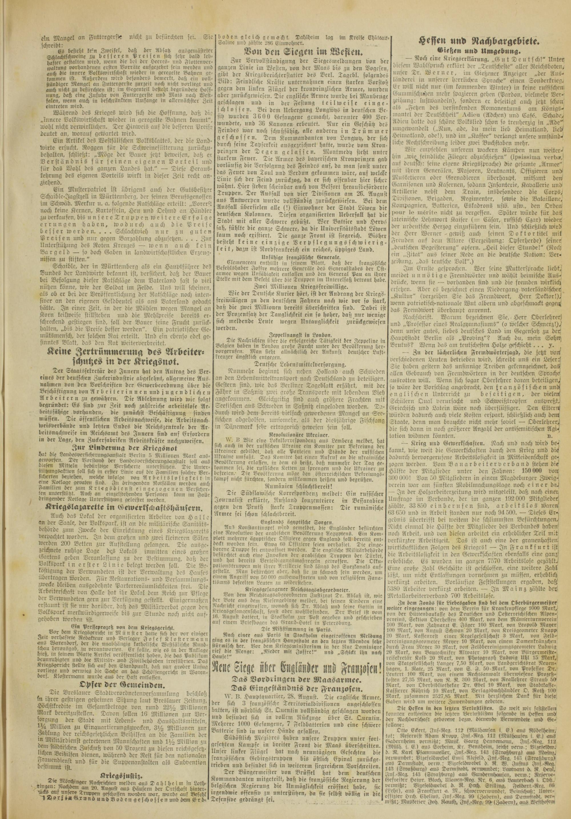 YV. B. Hauptquartier, 28. August. Tic englische Armee, der sich 3 französische Territorigldivisioncil angeschlossen batten, ist nördlich St. Quentin vollständig geschlagen worden nnd befindet sich i» vollem Rückzüge über St. Quentin. Mehrere 1000 Gefangene, 7 Feldbattcricn nnd eine schwere Batterie sind in unsere Hände gefallen.