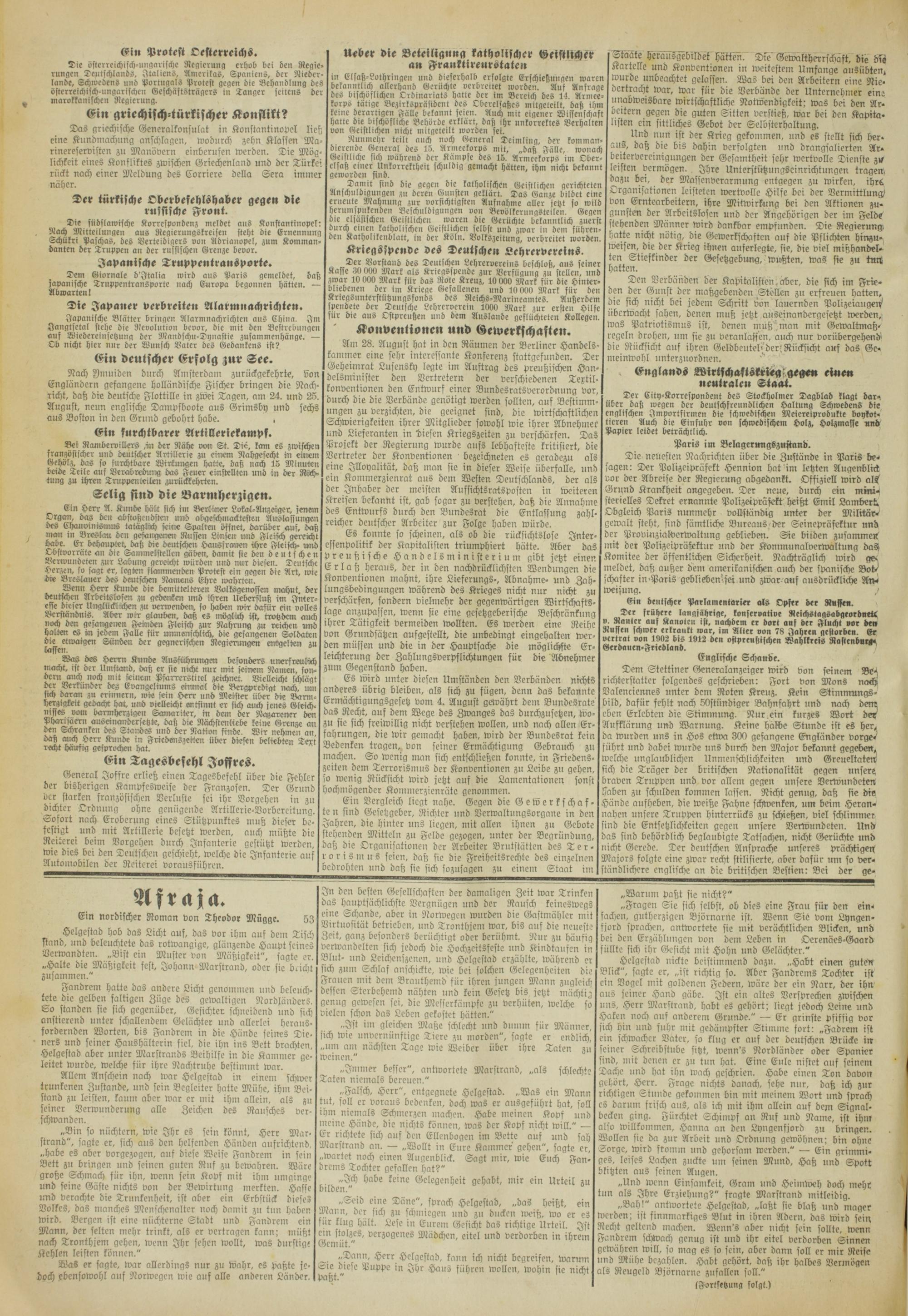 Die österreichisch-ungarische Regierung erhob bei den Regierungen Deutschlands, Italiens, Amerikas, Spaniens, der Niederlande, Schwedens und Portugals Protest gegen die Behandlung des österreichisch-ungarischen Geschäftsträgers in Tanger seitens der marokkanischen Regierung.