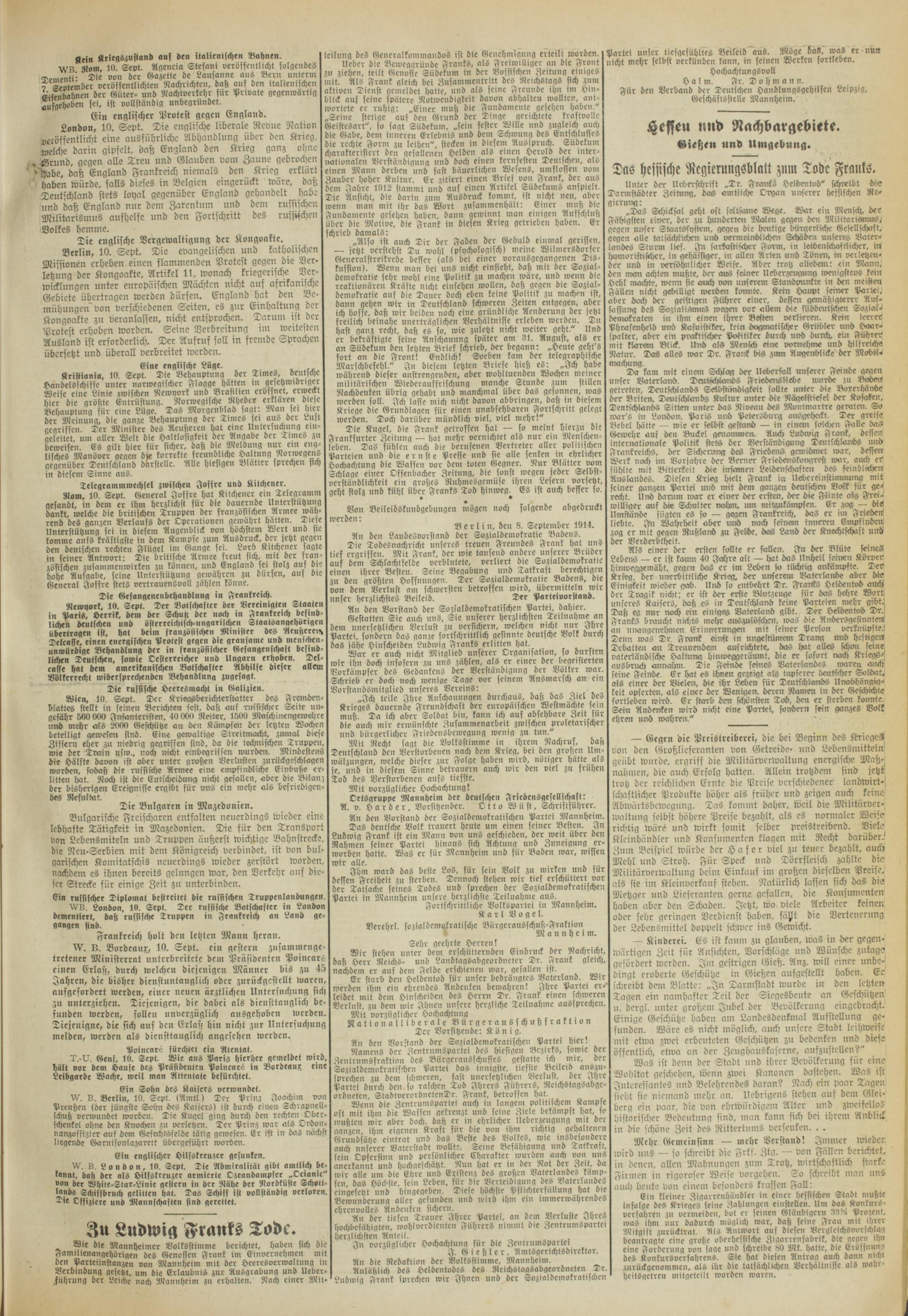Das deutsche Volk trauert heute um einen seiner Vesten. In Ludwig Frank ist ein Mann von uns geschieden, der weit über den Rahmen seiner Partei hinaus sich Achtung und Zuneigung erworben hatte. Was er für Mannheim und für Baden war, misten wir alle.