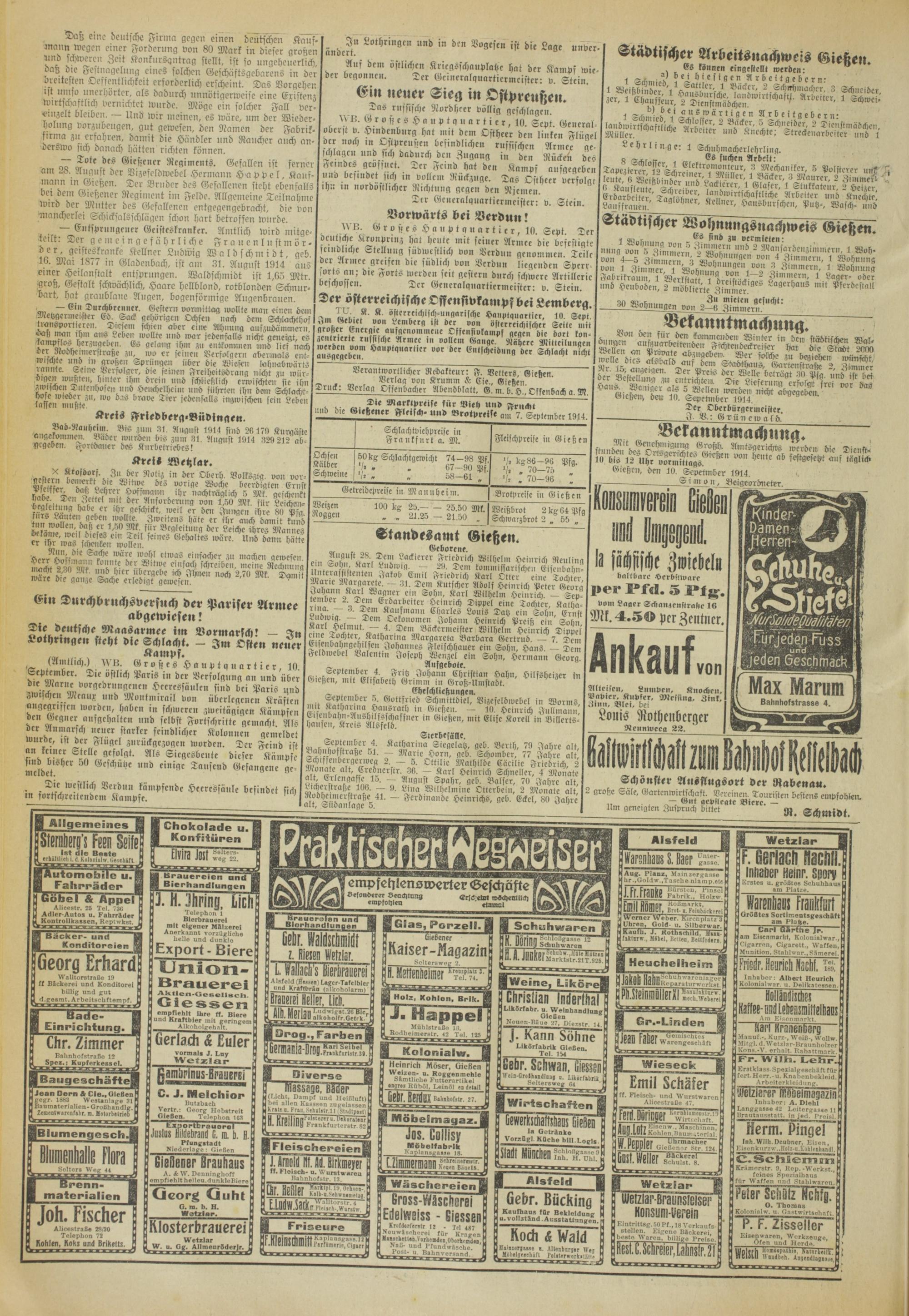 Gießen, den 10. Sepettnber 1914.