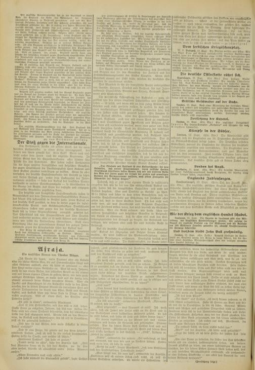 Ter englische Ministerpräsident irrt sich. Seit England sich mit Rußland und Japan gegen Deutschland verband, hat cs in einer in der Geschichte der Welt einzig dastehenden Verblendung die Zivilisation verraten und die Sache der Freiheit der europäischen Völker und Staaten dem deutschen Schwert zur Wahrung übertragen. gcz. von B e t h in a n n - H o l l w e g.