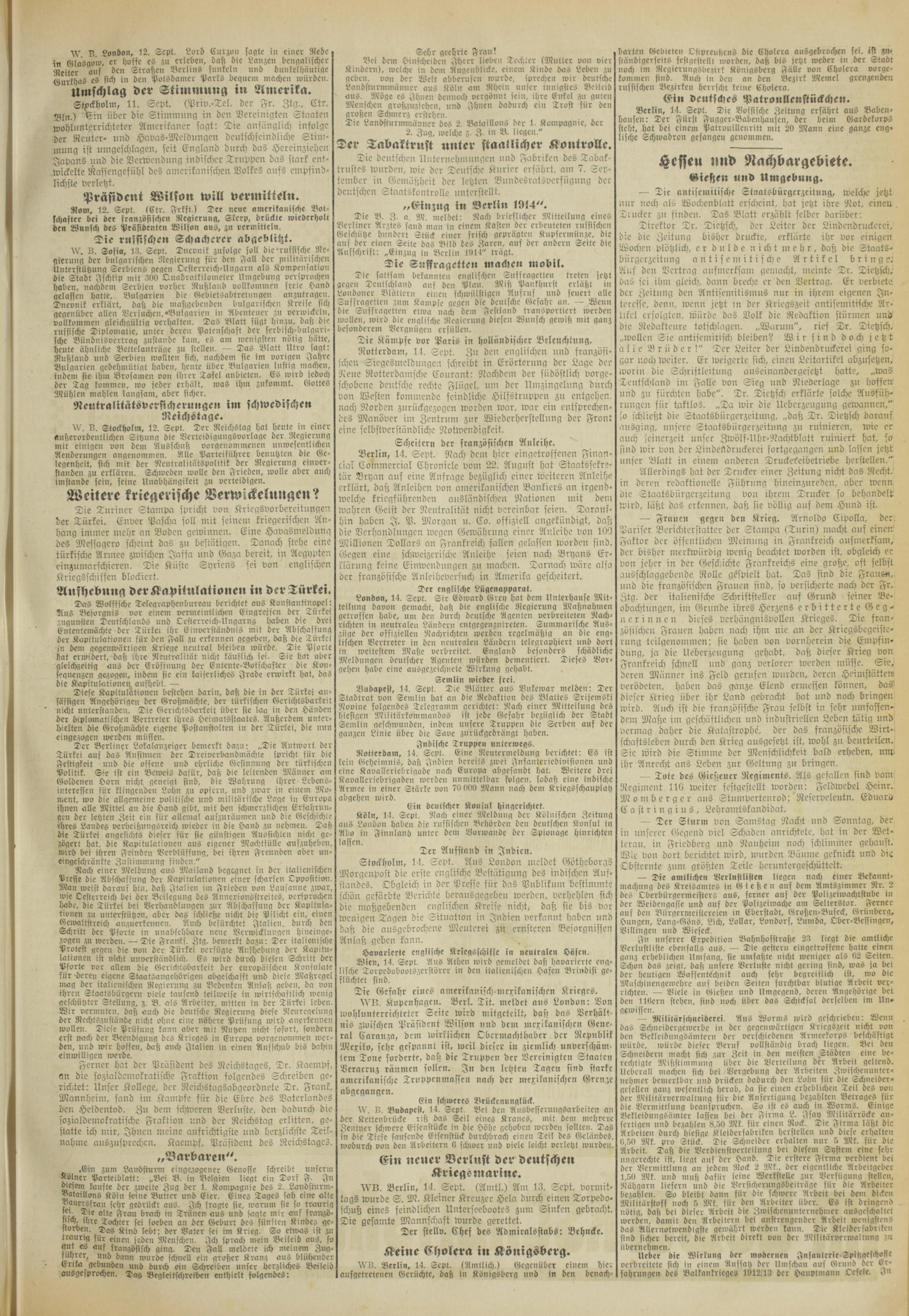 Rom, 12. Sept. (Ctr. Frkft,) Der neue amerikanische Botschafter bei der französischen Rcqierniiq, Skcrp, drückte wiederholt den Wunsch des Präsidenten Wilson aus, z» vermitteln.