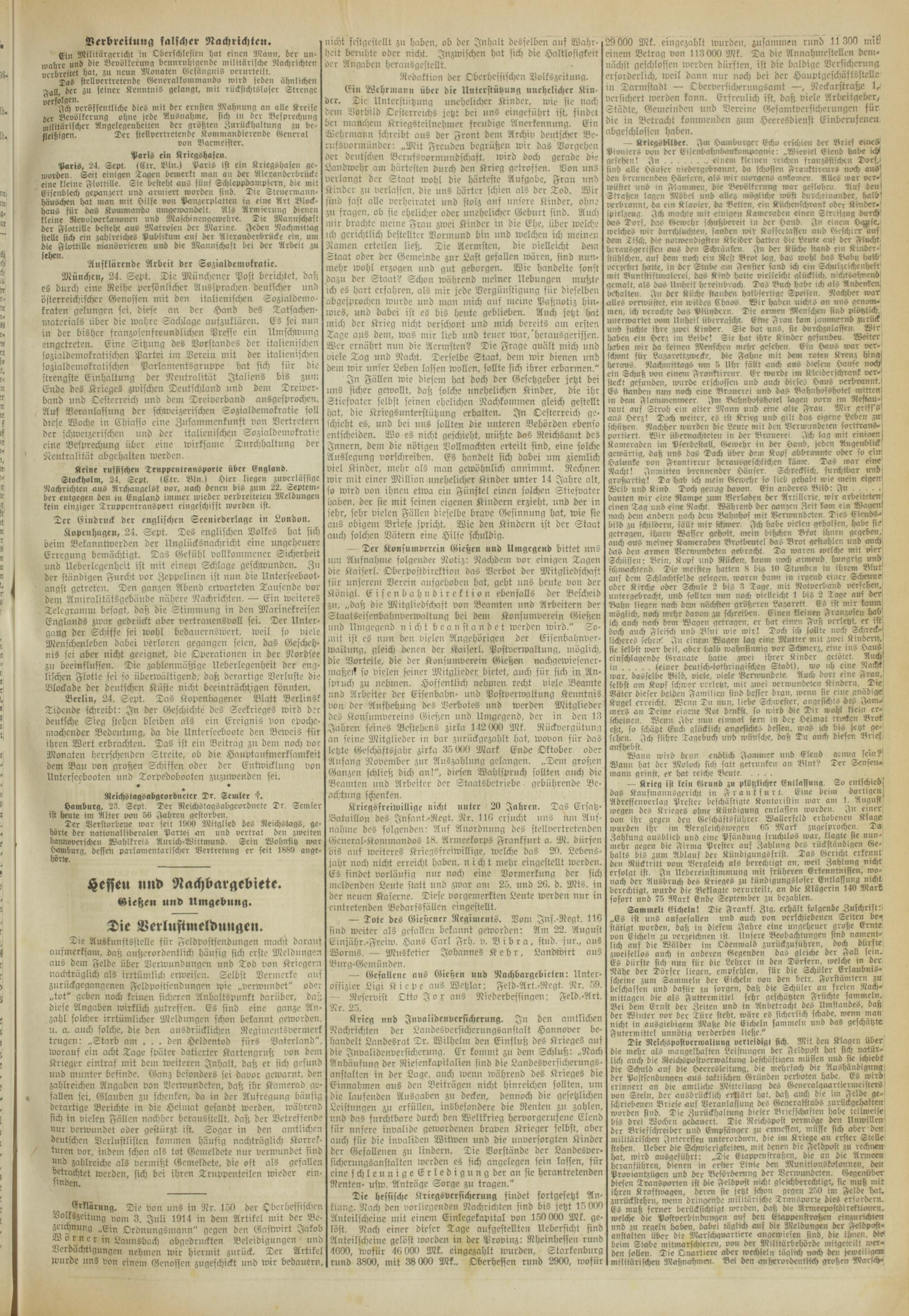 — Gefallene aus Gießen und Nachbargebicten: Unteroffizier Ligi Kiepe aus Wetzlar; Feld-Art.-Regt. Nr. 59. — Reservist Otto Ior ans Niederbeslingen; Feld.-Art. Nr. 25.