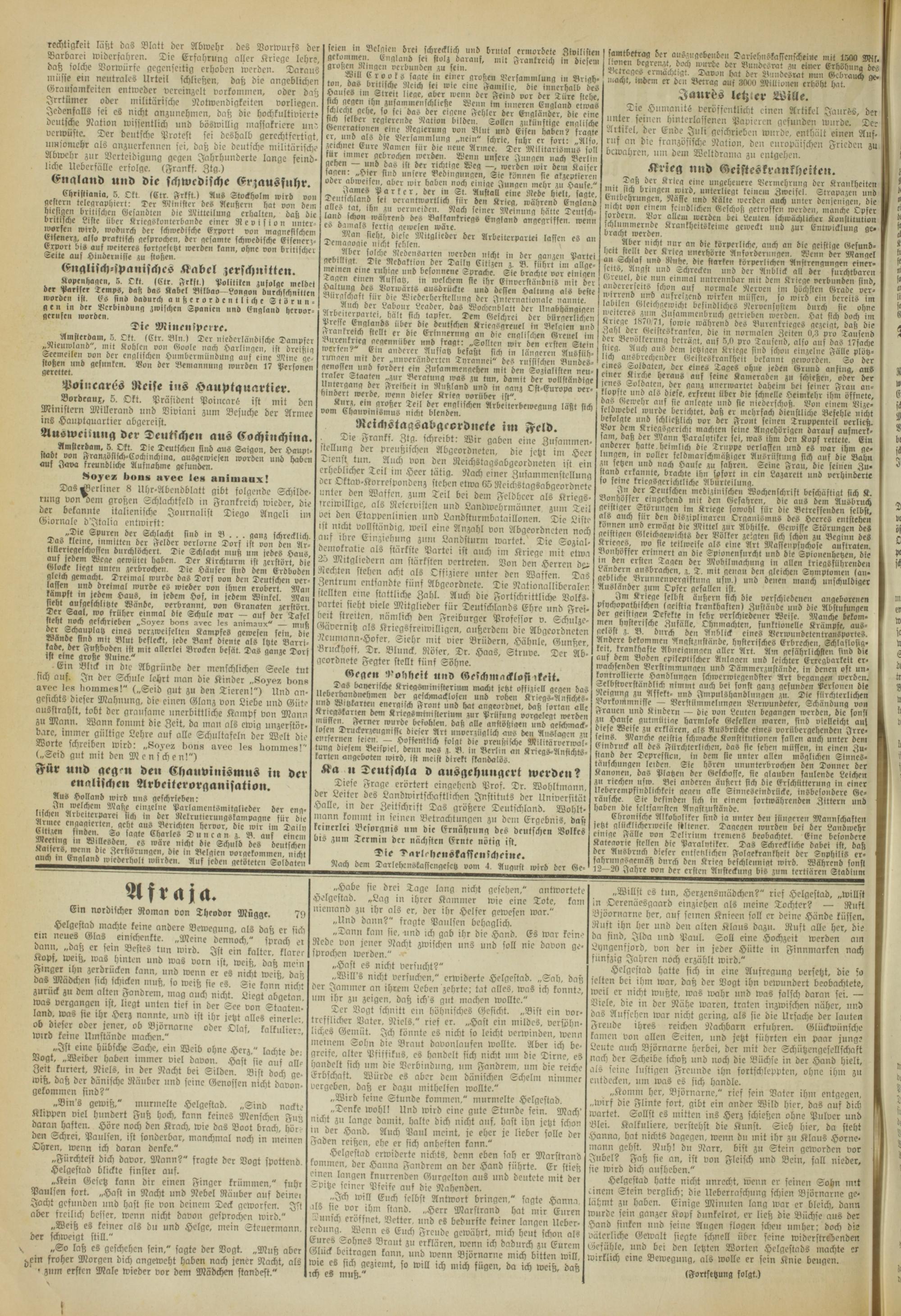 Tic Hunianits veröffentlicht einen Artikel Jaurds, der unter seinen hintcrlossenen Papieren gefunden wurde. Ter Artikel, der Ende Juli geschrieben wurde, enthält einen Auf- ruf an die französische Nation, den europäischen Frieden zu bewahren, um dem Wcltdrama zu entgehen.