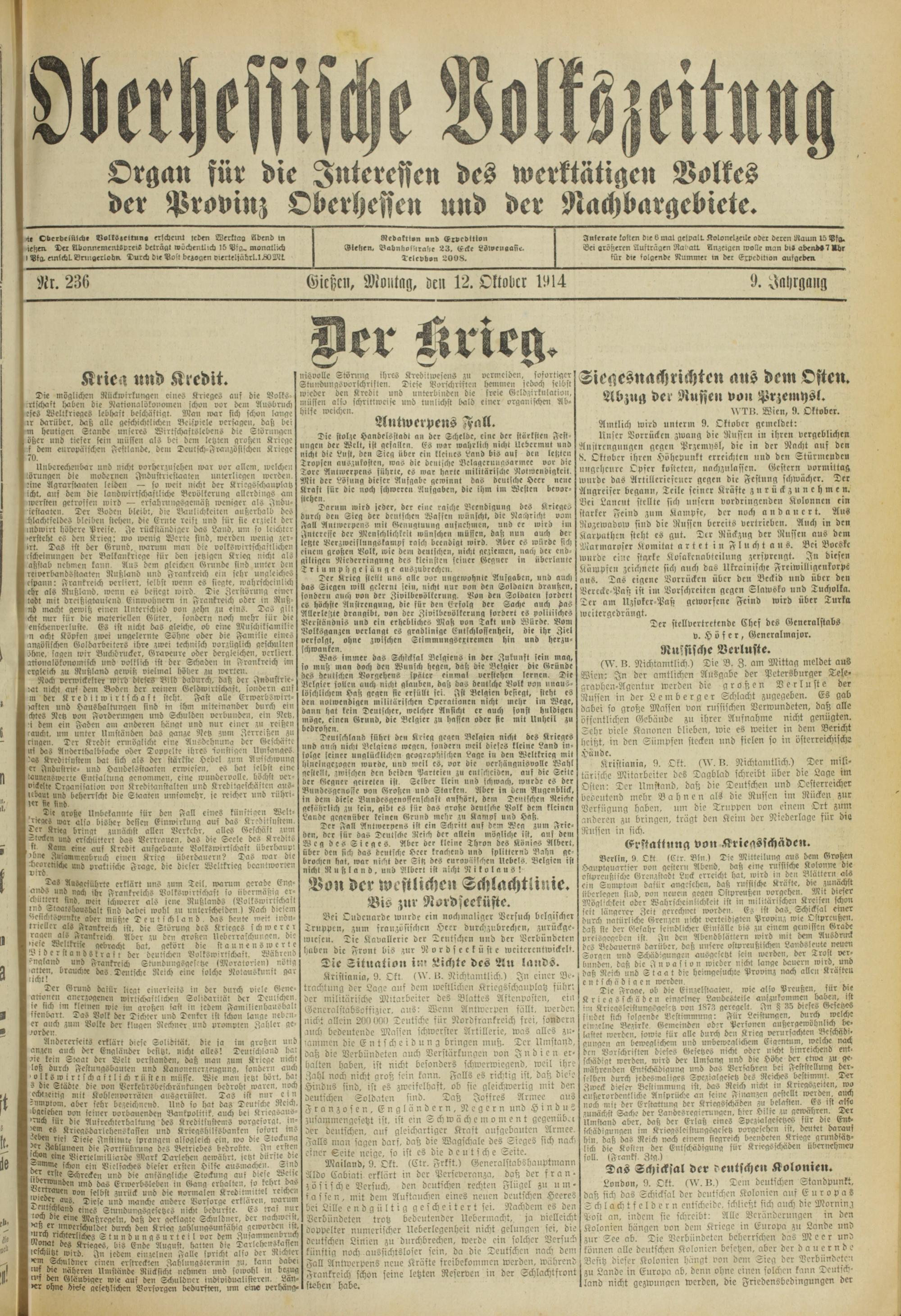 Gicßcii, Moutllg, Den 12. Oktober 1914