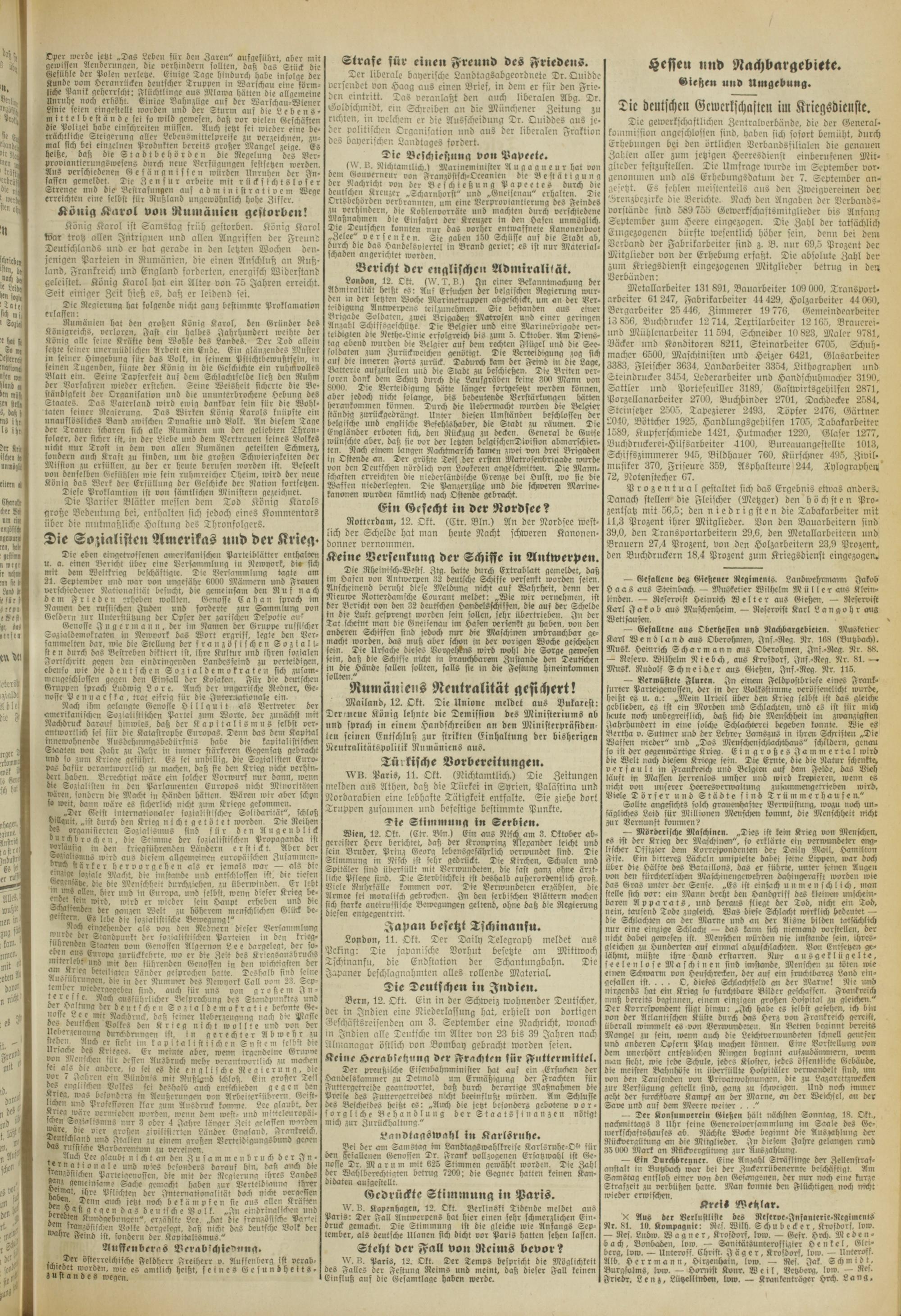 — Neserv. Wilhelm N i« b ch, aus Krofdorf, Jnf.-Reg. Nr. 81. —- Mnsk. Rudolf Schneider aus Gießen, Jnf.-Reg. Nr. 115.