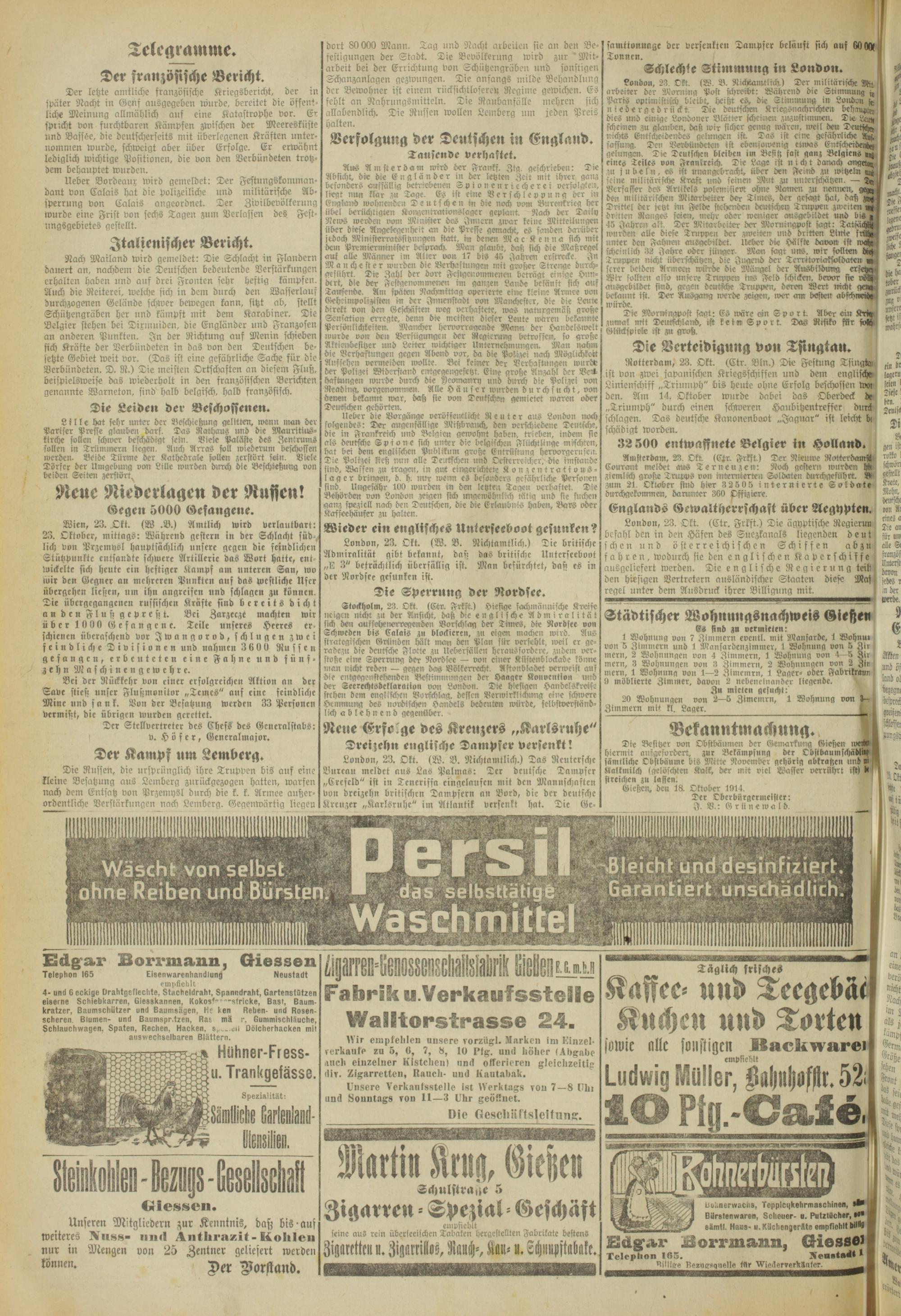 Der letzte amtliche französische Kriegsbericht, der m später Nacht in Gynf ausgegeben wurde, bereitet die öffentliche Meinung allmählich auf eine Katastrophe vor. Er spricht von furchtbaren Kämpfen zwischen der Meeresküste und BassSe, die deutscherseits mit überlegenen Kräften unternommen wurde, schweigt aber über Erfolge. Er erwähnt lediglich wichtige Positionen, die von den Verbündeten trotzdem behauptet wurden.