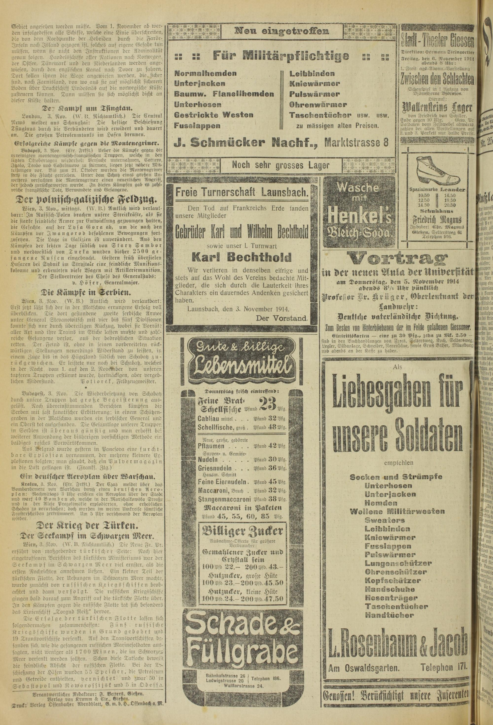 Launsbach, den 3. November 1914.