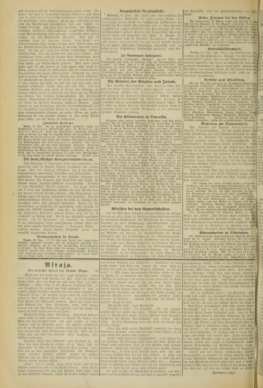 Entgegen allen anders lautenden Nachrichten muh doch gesagt werden, dah die össcntlichc Meinung in den Bereinigten Staaten, soweit sic durch die Prelle ausgedritckt wird, kaum weniger antideutsch ist wie zu Beginn des Krieges. TaS zeigt sich B. daran, dah man allgemein damit einverstanden ist, dah durch die englische Seehcrrschaft den deutschen und österreichischen Reservisten die Heimkehr unmöglich gemacht worden ist, dah sich aber kaum jemand dagegen wendet, dah fortwährend Munition und Waffen in grohc» Mengen für die Alliierten sabriziert und verschifft werden. >