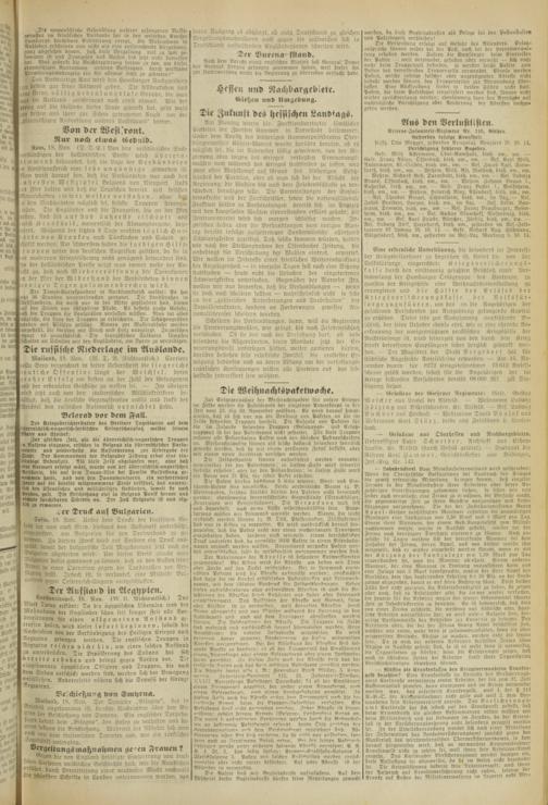 Unteroffizier Poter Schneider, Architekt aus Erben- hausen, Kr, Alsfeld ldurch Unfall getötet). — Leutnant der Reserve Karl H a »1 in e r, Gerichtsassessor aus Büdingen, Jnf.-Reg. -Nr. 1-13.