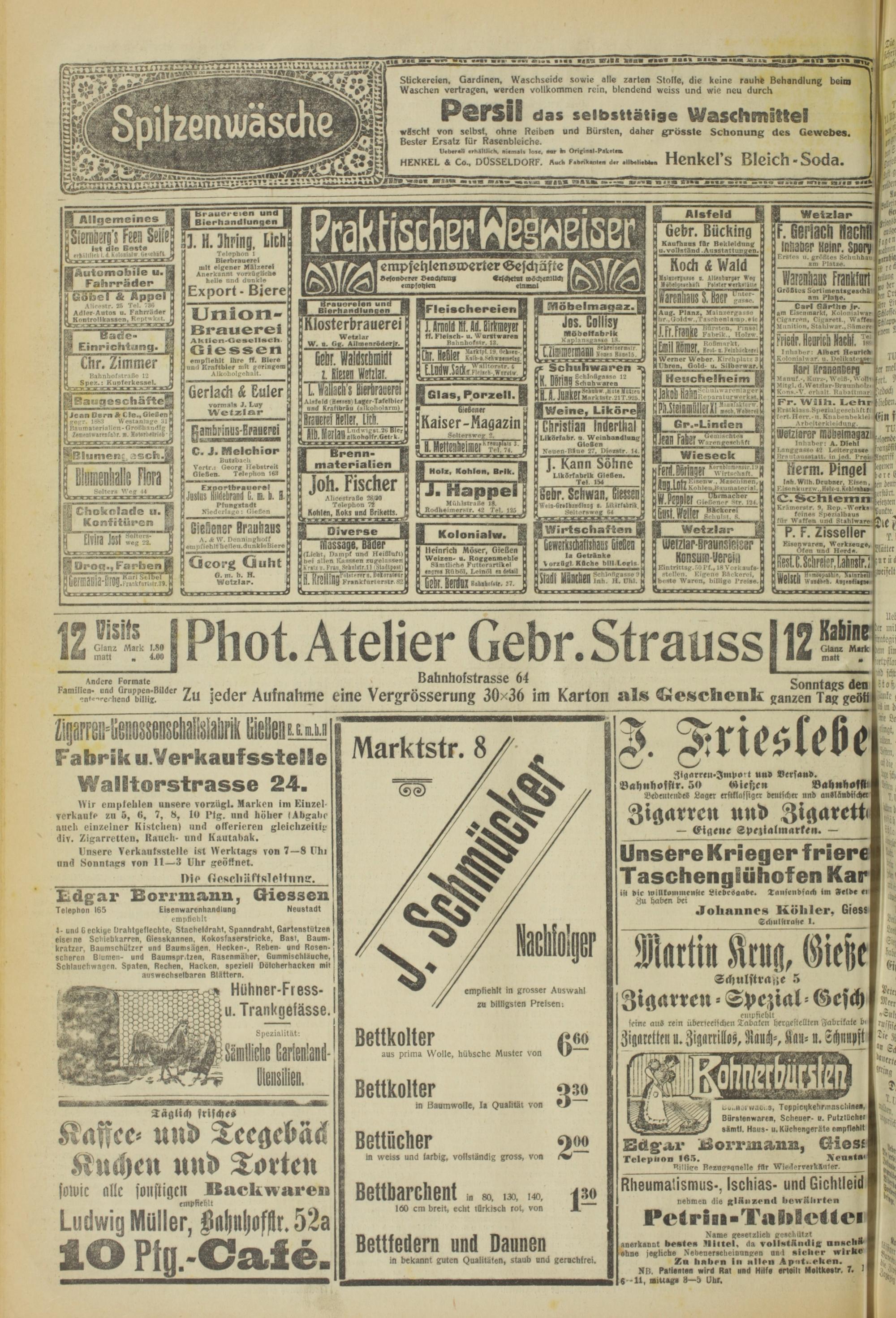 Butzbach Vertr.: Georg Hebstreit Gießen. Telephon 162