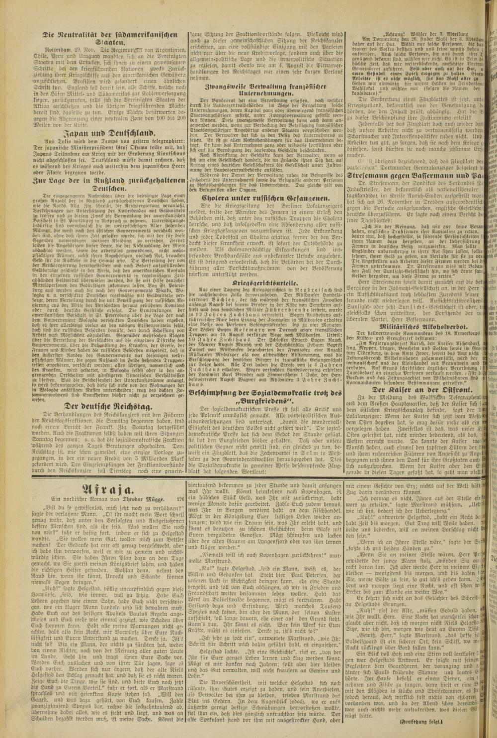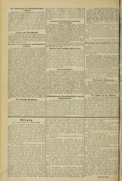 Aus Tokio wird dem Teinps von gestern telegraphiert: Ter japanische Ministerpräsident Gras Okuma teilte mit, daß Japans Teilnahme am Krieg mit der Eroberung Kiautschous nicht abgeschlossen sei. Deutschland müsse damit rechnen, daß es während des Krieges auch weiterhin dem japanischen Heere oder Flotte begegnen werde.