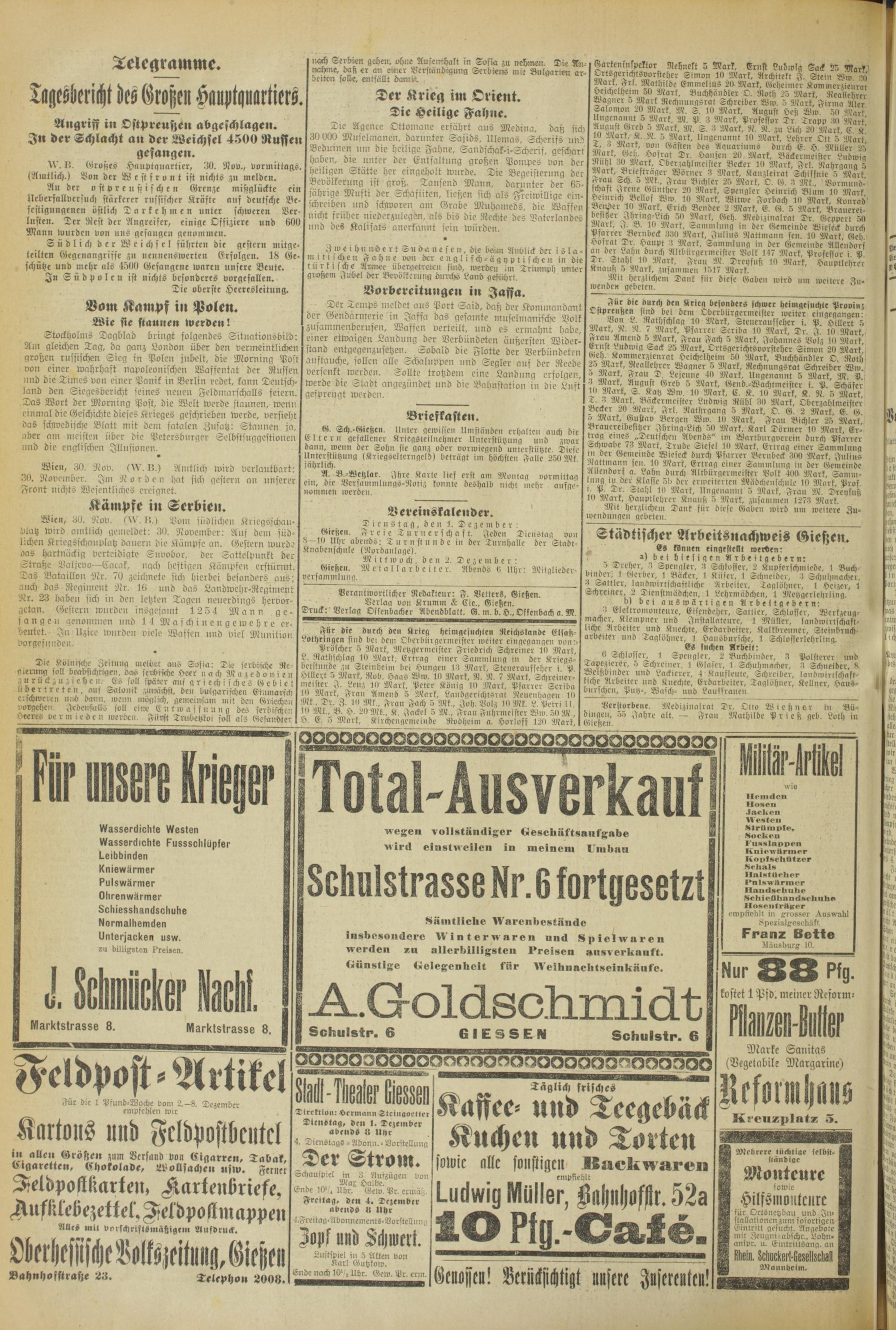 W. B. Großes Hauptquartier, M. Nov., vormittags. (Amtlich.) Bon der Westfront ist nichts zu melden.