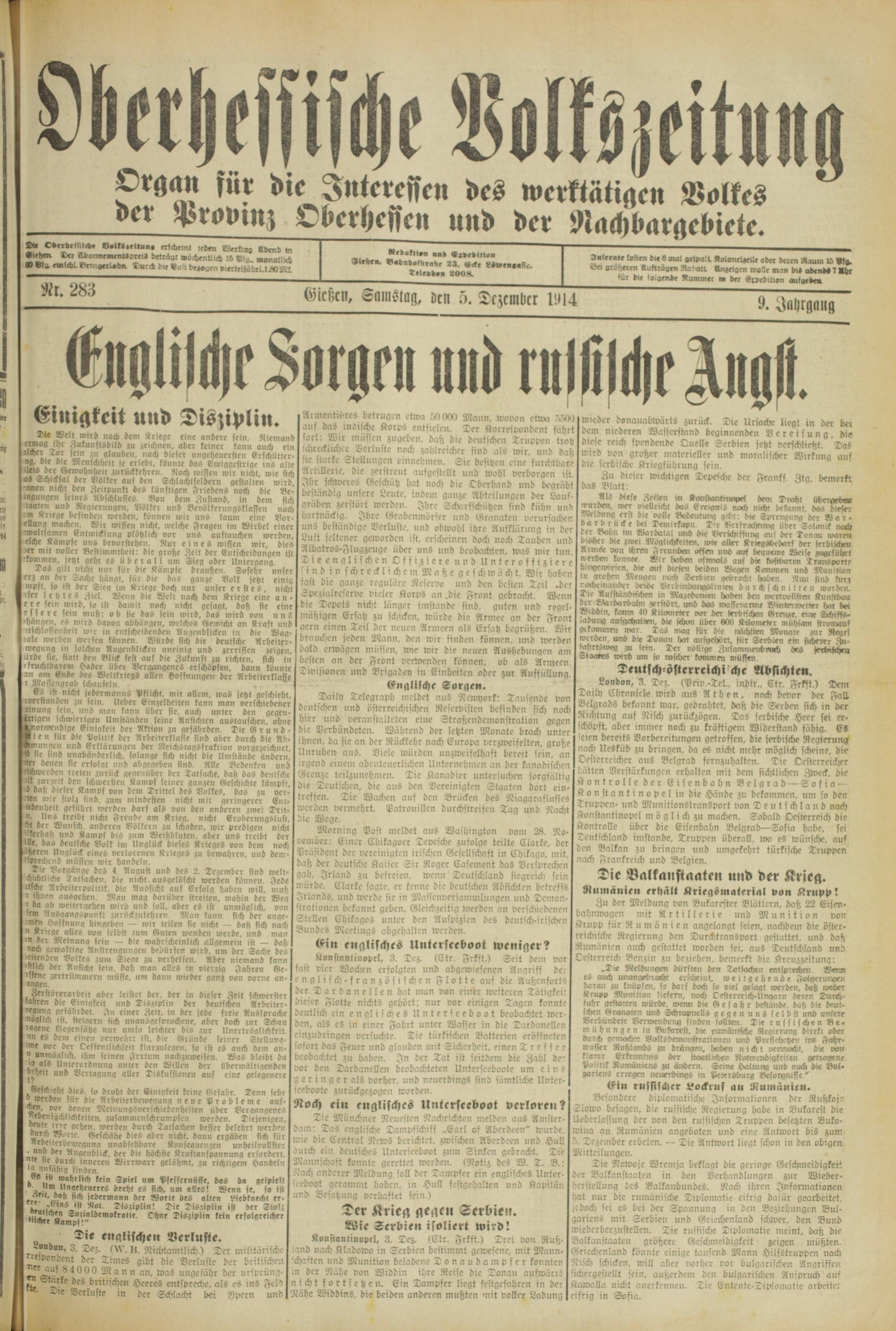 Gießen, Samstag, Den 5. Tczcmbcr 1914