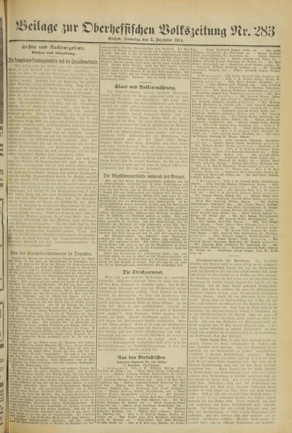 Beilage zur Oberhesfische» Boltszeitmig Nr. 283