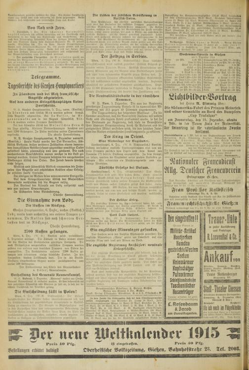 Der Verlauf der Kämpfe um Lodz entspricht nach wie vor unseren Erwartungen.