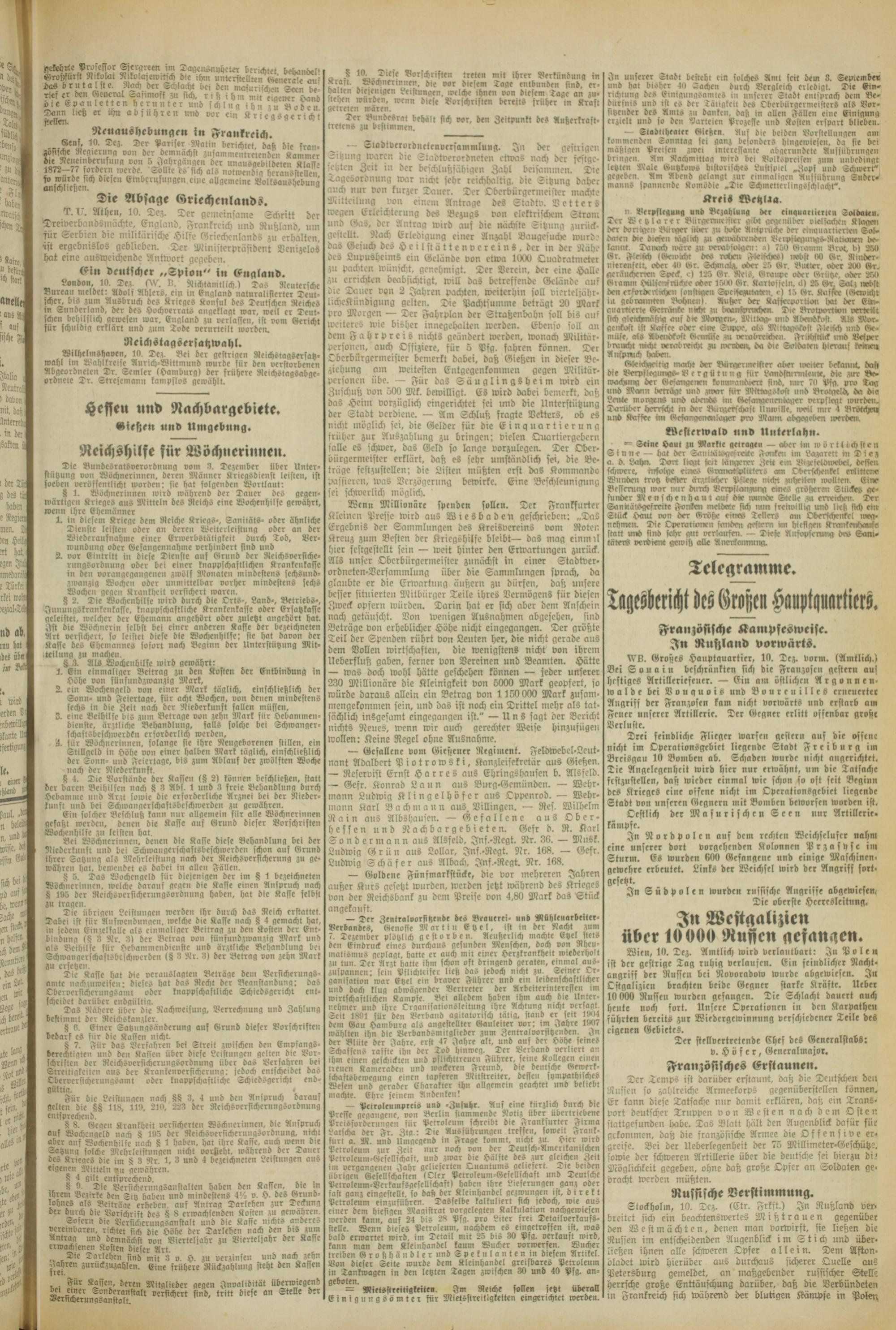 WB. Großes Hauptquartier, 10. Tez. vorm. (Amtlich.) Bei S o u a i n beschränkten sich die Franzose» gestern aus heftiges Artilleriefeuer. — Ein am östlichen Argonncn- Walde bei B o u q u o i s und Bourciiilles ernruertel Angriff der Franzosen kam nicht vorwärts »nd erstarb am Feuer unserer Artillerie. Der Gcgnrr erlitt offenbar große Verluste.