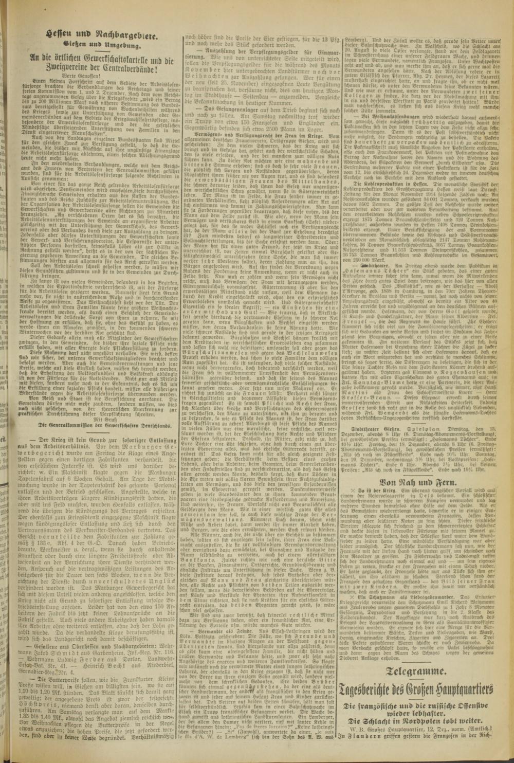 — Gefallene aus Dbcrhessrn und Nachbargebicten: Dehr- mann tzakob Schmidt aus Garbenhcini. Jnf.-Rcg. Nr. 116. — Wehrmann Ludwig Ferber aus Dorlar, Landwebr- Ersatz-Bot. Nr. 4L — Heinrich Becht au» Niederbiel. Grenadier-Reg.^Nr. 4.