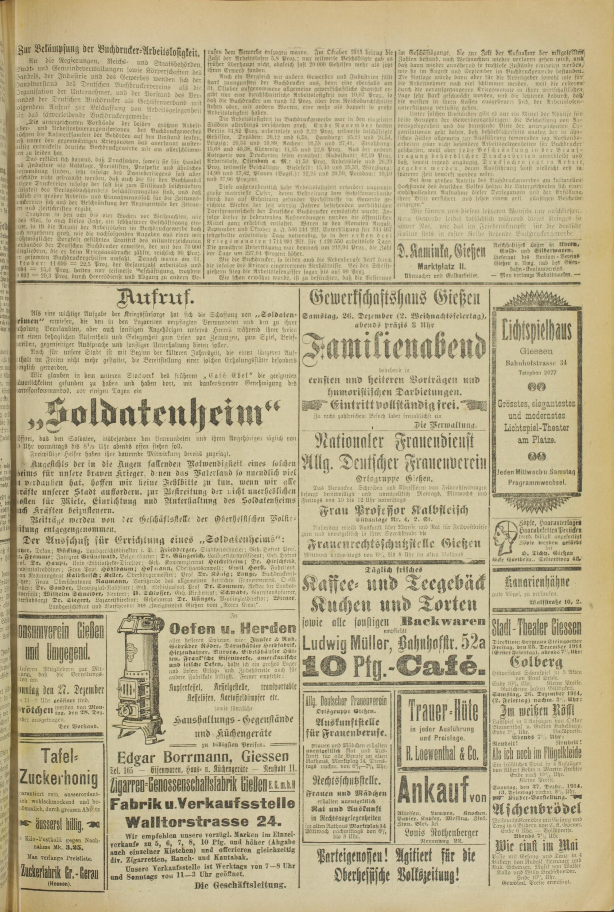 Aeilräije werden voll ter fficfchäslsffeffe der Hheryesffjchen Volü'- itung entgegengcnommeu.