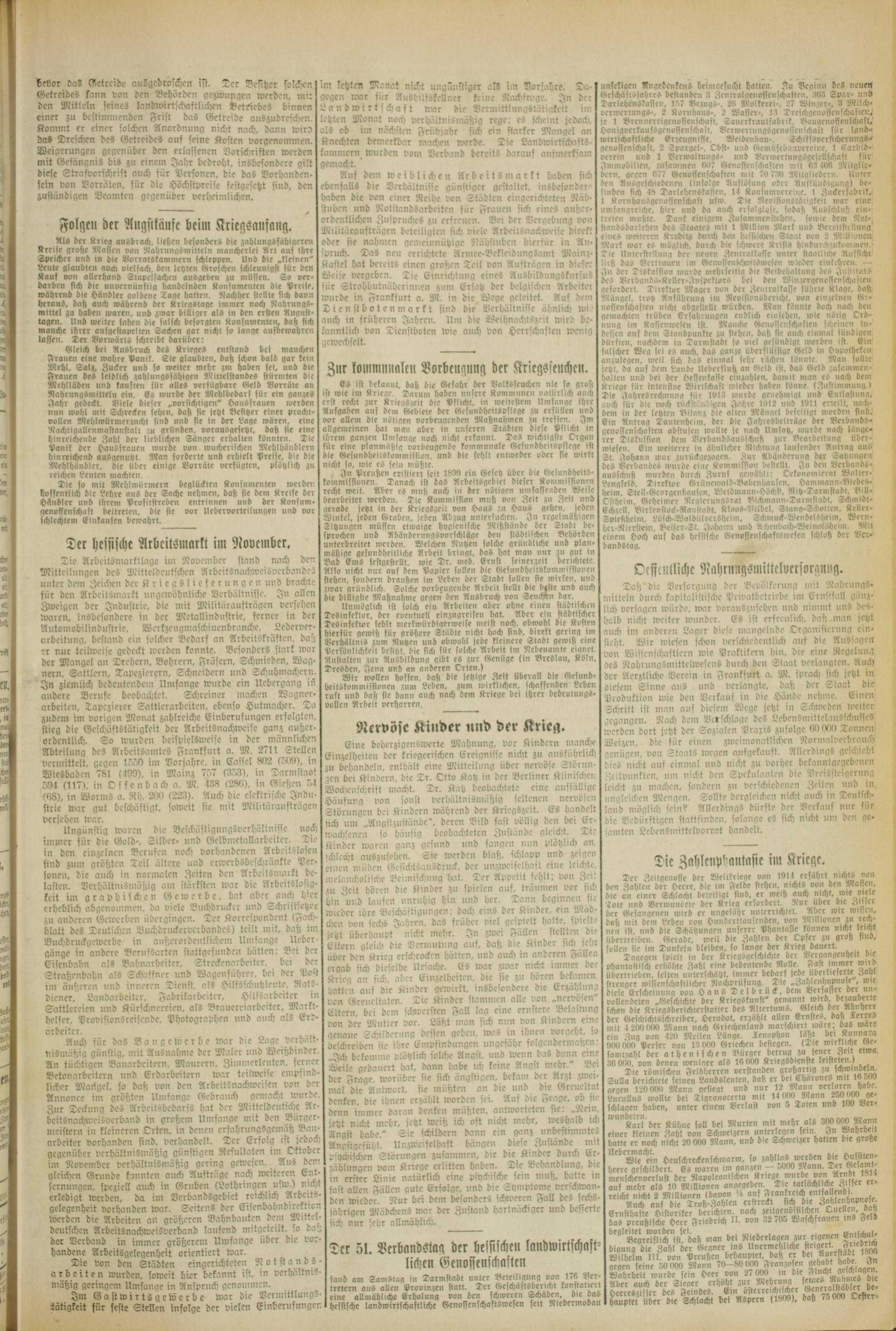 Aus dem weiblichen ArbeitSmarkt haben fick ebenfalls die Verhältnisse günstiger gestaltet, insbesonder- hoben die von einer Reihe von Städten eingerichteten Räb- ltuben und Notstandsarbeiten für Frauen sich eines außerordentlichen Zuspruches zu erfreuen. Bei der Vergebung von Militüraufträgen beteiligten sich viele Arbeitsnachweise direkt oder sie nahmen gemeinnützige Nähslnben hierfür in Anspruch. Das neu errichtete Armee-Bekleidungsamt Mainz- Kaslel Hot bereits einen großen Teil von Aufträgen in dieser Weise vergeben. Tie Einrichlung eines AusbildungskursuS für Strohhiitnäherinnen zum Ersatz der belgischen Arbeiter wurde in Frankfurt a. M. in die Wege geleitet. Auf dem Dienstbotenmarkt sind die Verhältnisse ähnlich wi auch in früheren Jahre». Um die Weihnachtszeit wird bekanntlich von Dienstboten wie auch von Herrschaften wenig gewechselt.