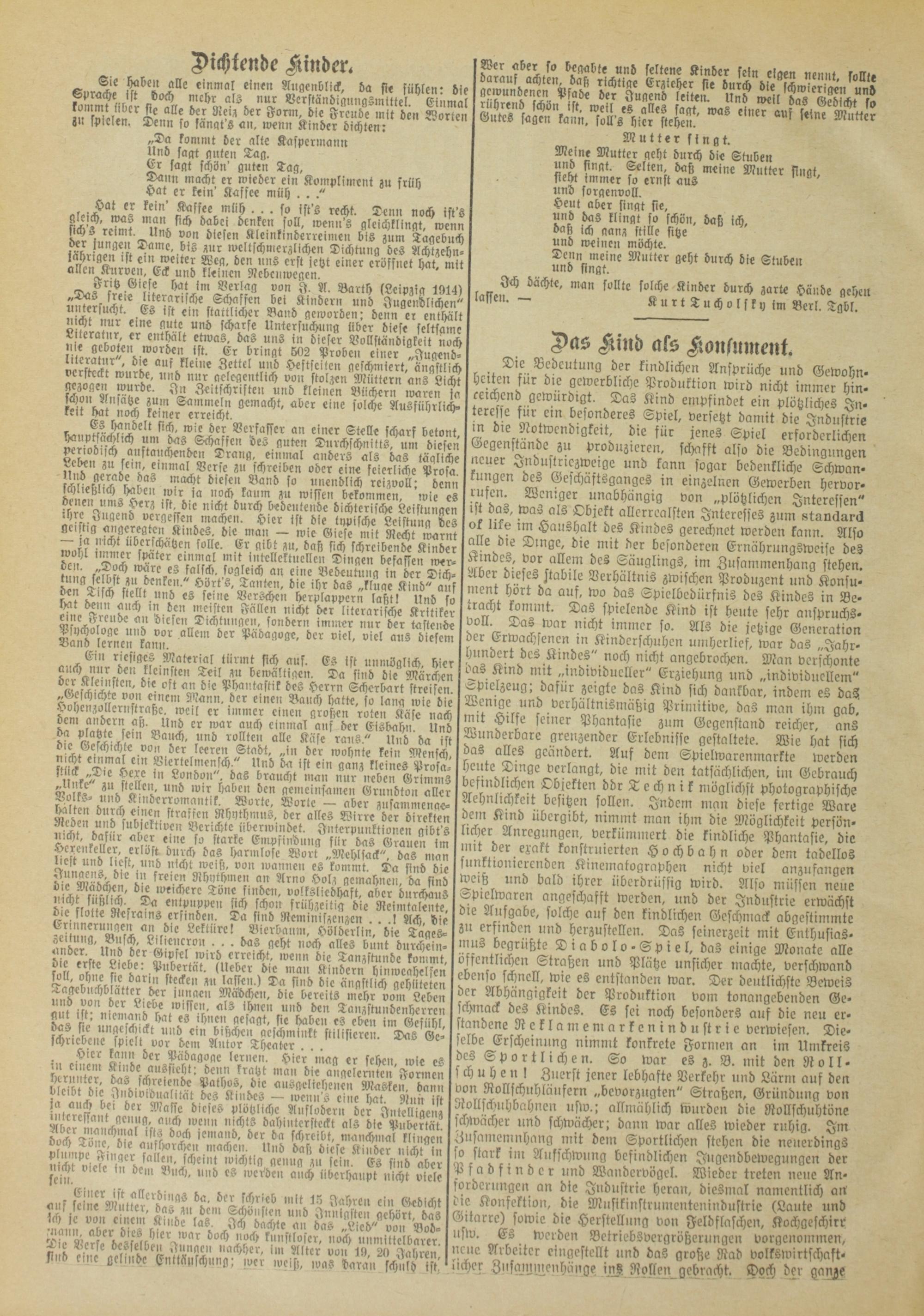 Ich dächte, man sollte solche Kinder durch zarte Hände gehen lassen. — KurtTucholsky im Berl. Tgbl.