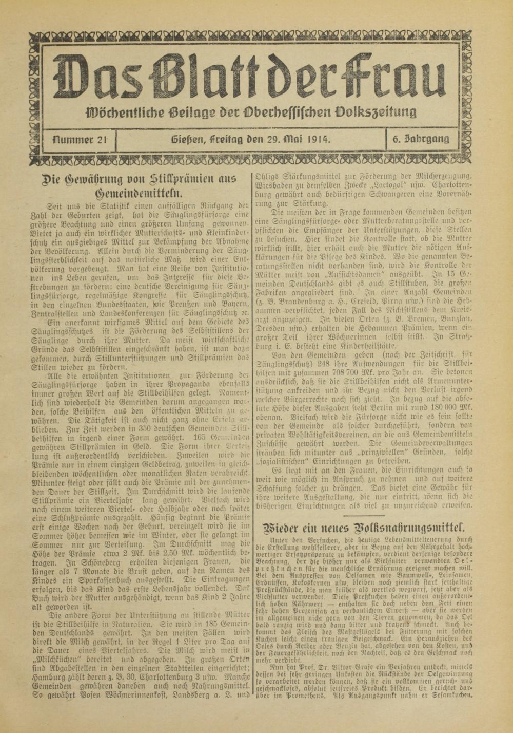 Ein anerkannt wirksames Mittel auf dem Gebiete des Säuglingsschutzes ist die Förderung des Selbststillens der Säuglinge durch ihre Mutter. Ta meist wirtschaftlich.' Gründe das Selbststillen eingeschränkt haben, ist man dazu gekommen, durch Stilluntcrstützungen und Stillprämien das Stillen wieder zu fördern.
