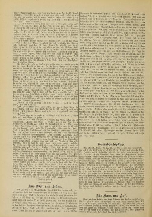 Tie „Ehekrisc" in Deutschland, Angesichts der immer mehr zu- nehniendcn Zahl der Ehescheidungen in Deutschland muß nian schon heute von einer Ehekrise sprechen, die vielleicht noch schwerere Gefahren in sich birgt als der jetzt so viel erörterte Geburtenrückgang, Dies geht mit groster Deutlichkeit hervor aus de» statistische» Aufstellungen Uber Ehe und Ehescheidung, die Hermann Friedemann in der bei der Deutschen Verlags-Anstalt in Stuttgart erschelnende» Zeitschrift lieber Land und Meer veröffentlicht, Tie Ehelosigkeit nimmt zwar bei uns in Deutschland nicht zu; unter den weiblichen