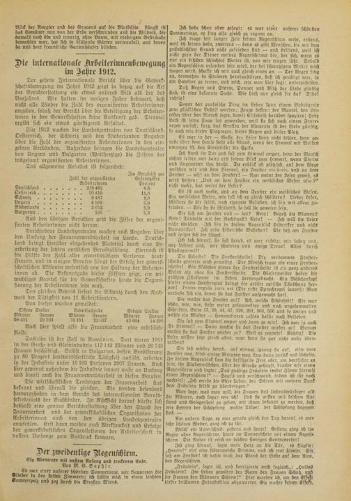 Die inlernalionate Drbeilerinttenvewegttng im Jahre 1912.