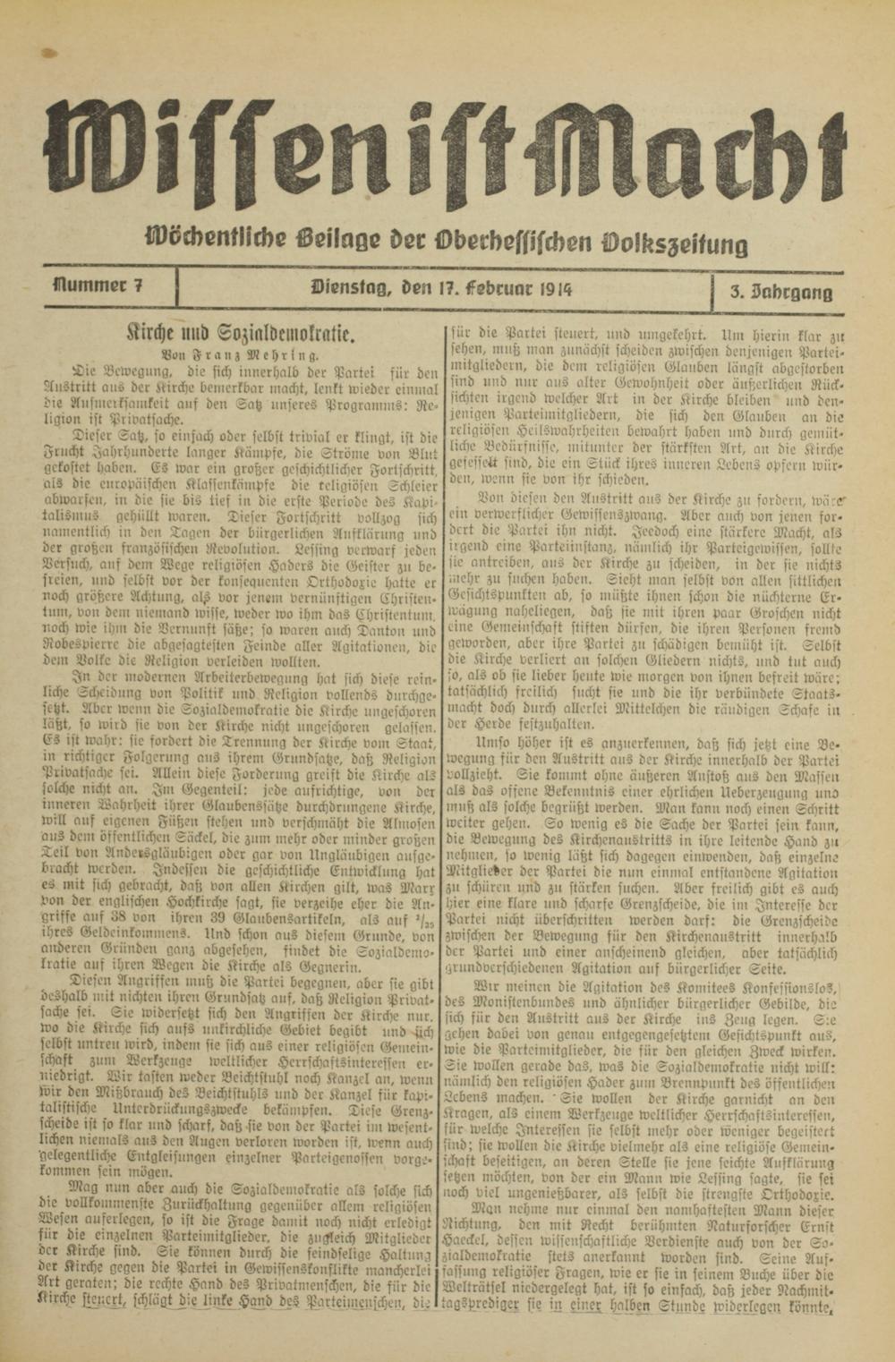 Kirche und Sozialdemolratie. Von Franz Mehring.