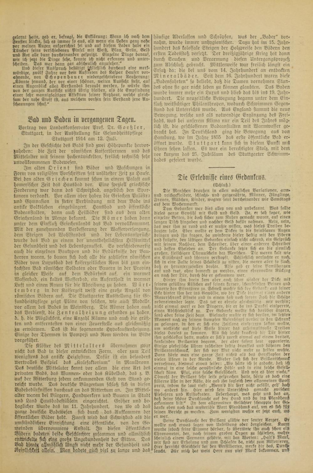 Vortrag von Landeskonservator Prof. Dr. Goeßler, Stuttgart, in der Ausstellung für Gesundheitspflege 5 Stuttgart 1914 am 12. Juli.