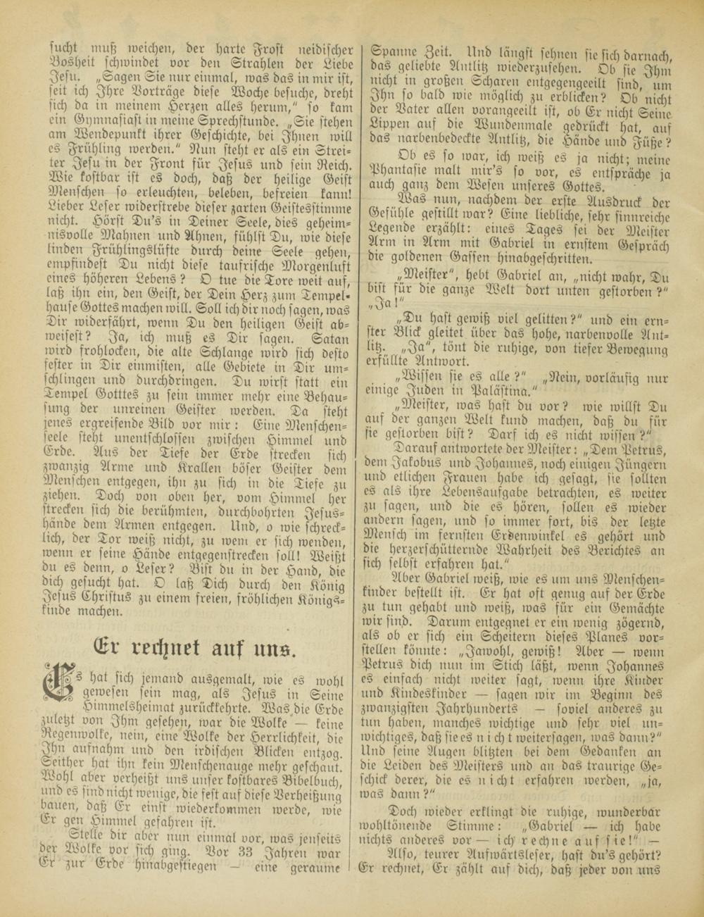 Also, teurer Aufwärtsleser, hast du's gehört? Er rechnet, Er zählt auf dich, daß jeder von uns