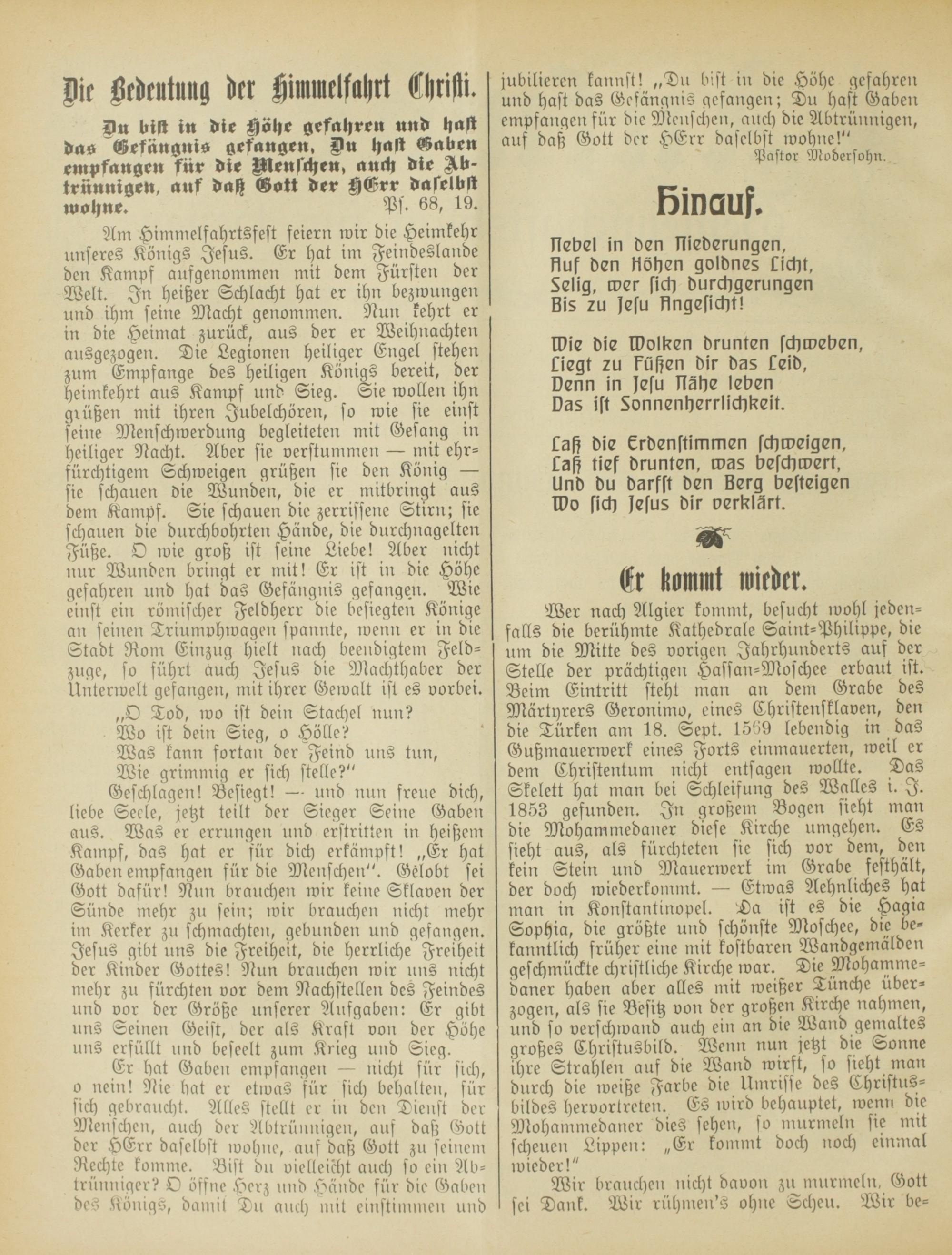 Pu l«iß rn die Höbe gefahren und haß das Gefängnis gefangen, Pu haß Gaben empfangen für die Menschen, auch die Abtrünnigen. auf datz Gott der HErr daselbß mahne. Ps. 68, 19.