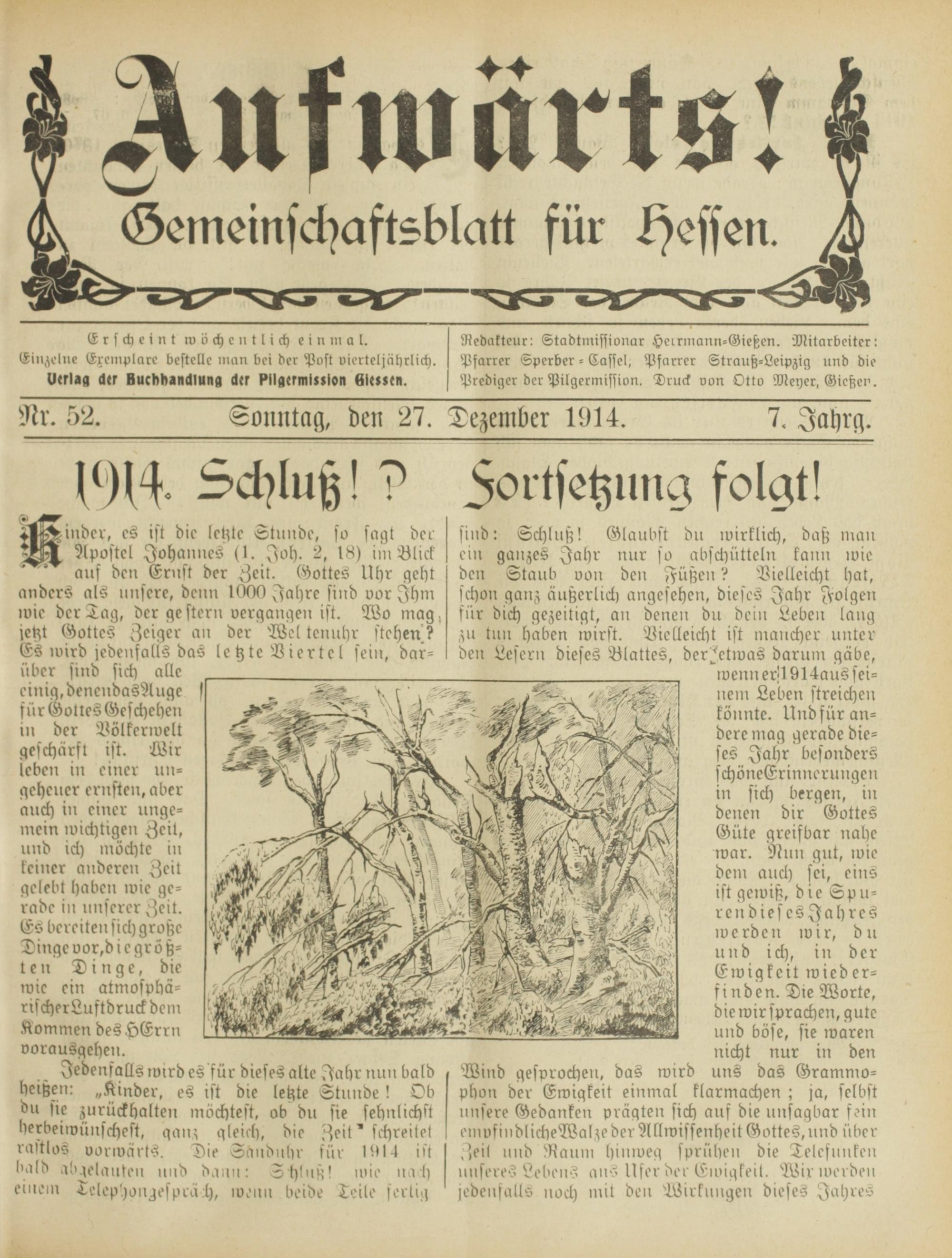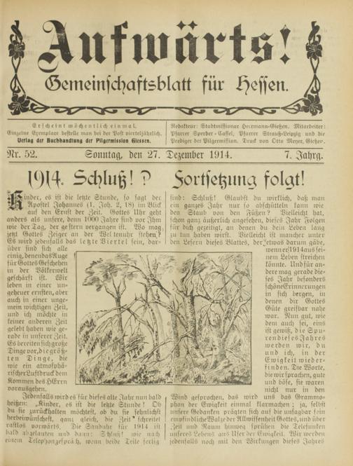 Redakteur: Stadtmissionar Herrmann-Gießen. Mitarbeiter: Psarrer Sperber - Cassel, Pfarrer Strauß-Leipzig und die Prediger der Pilgermission. Druck von Otto Meyer, Gießen.