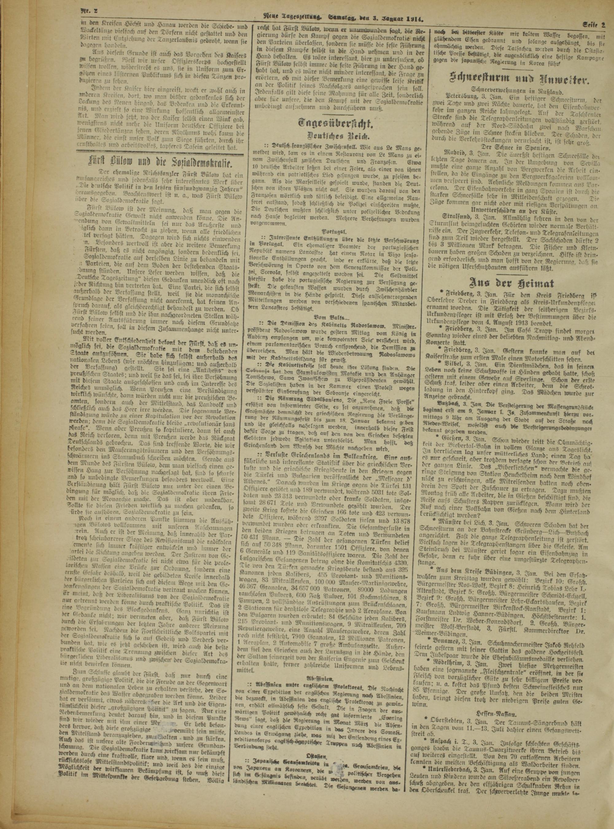 Neu« Togeszenu«-. Snmsiag. »en 3. 2a»uar lau.
