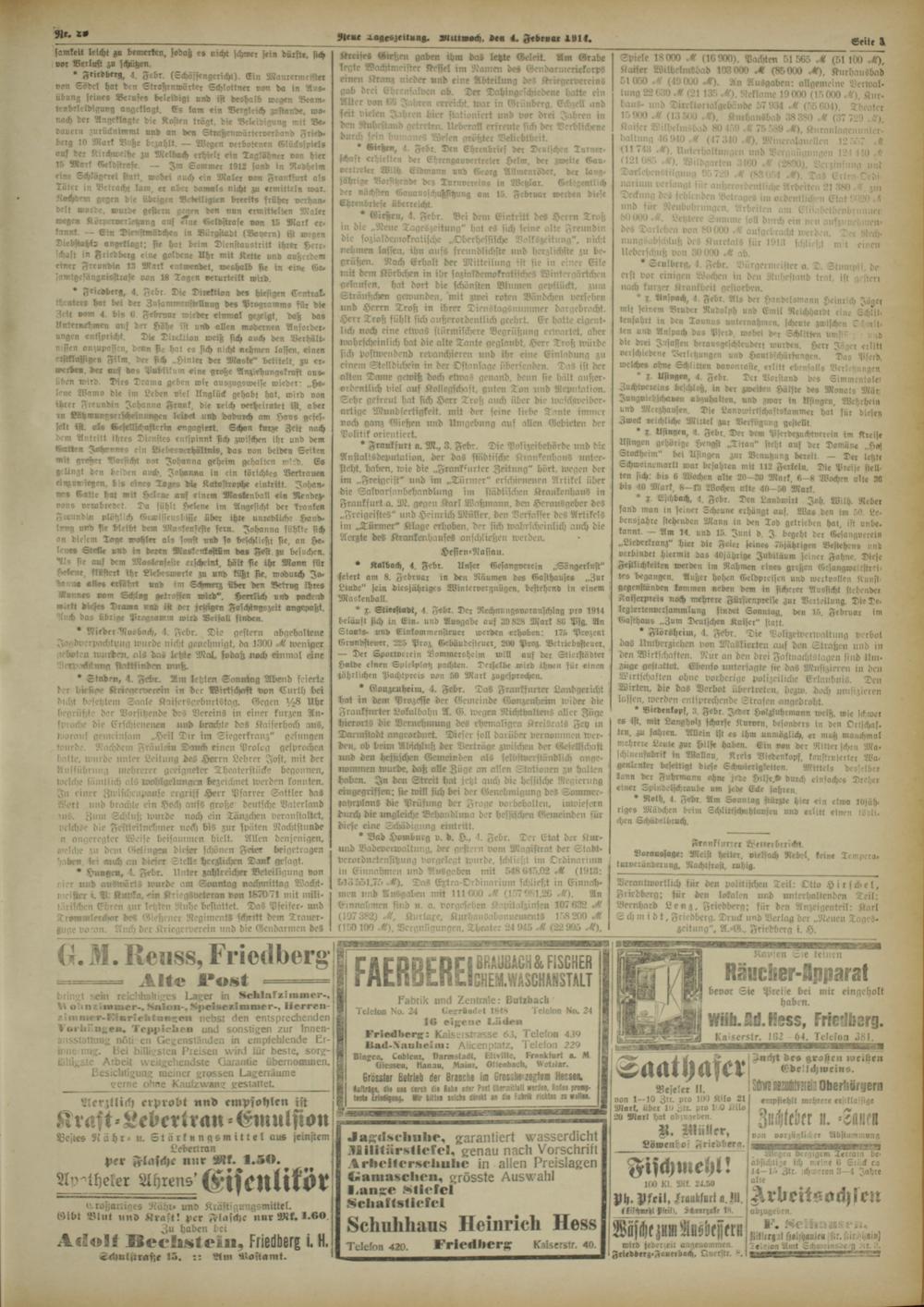 Verantworllich für den polttischen Teil: Otto Hirswel, Fircdberg: für den lokalen und unlerhalienden Teil: Bernhard Lenz, Friedberg: für den Anzeigenteil: Karl Schmidt, Friedberg. Druck und Verlag der ./Neuen Tages- zeitung", A.-K., Friedberg i. H.